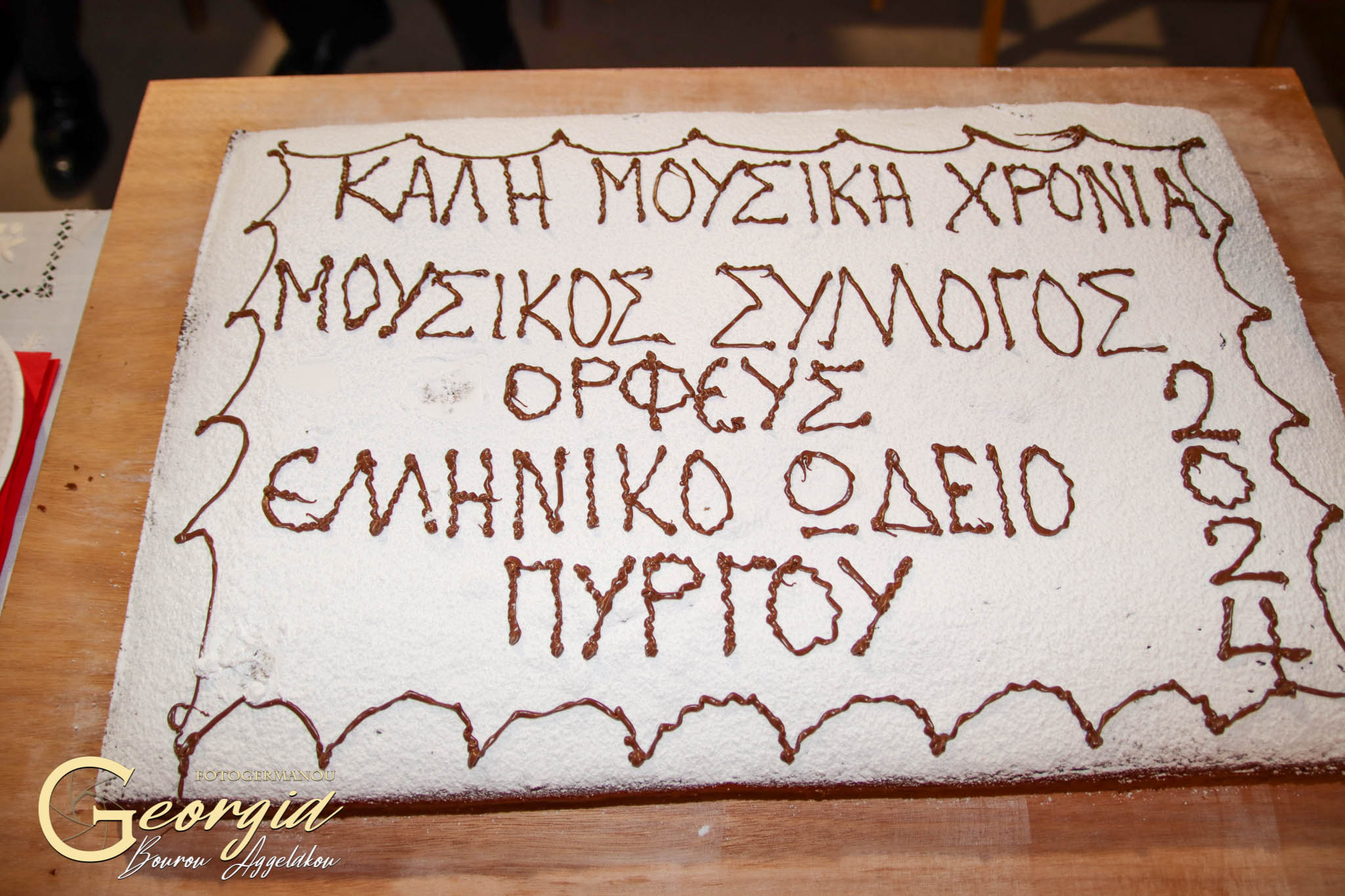 Σε ιδιαίτερα γιορτινή ατμόσφαιρα, έκοψαν την πρωτοχρονιάτικη πίτα τους την Τετάρτη 7 Φεβρουαρίου 2024 τα μέλη του Μουσικού Συλλόγου ΟΡΦΕΥΣ- Ελληνικό Ωδείο Πύργου. Η προσέλευση μελών και φίλων ήταν αθρόα και οι αίθουσες του ωδείου πλημμύρισαν από κόσμο, μουσική, παιδικές φωνές, χαρούμενες και αισιόδοξες ευχές για καλή και δημιουργική χρονιά.