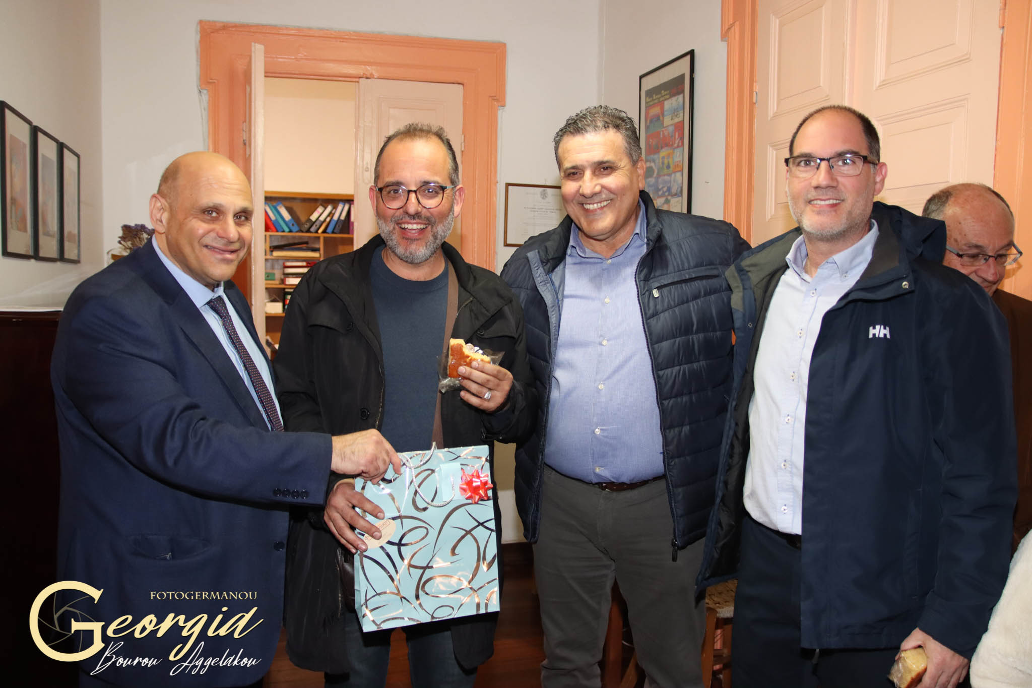 Η εκδήλωση έκλεισε με το μοίρασμα της βασιλόπιτας και ένα κέρασμα για όλους! Τα ηδύποτα ήταν προσφορά της διακεκριμένης τοπικής Εταιρείας ΠΟΤΟΠΟΙΑ ΜΥΛΩΝΑ. Την πίτα προσέφερε ο Άλκης Κωνσταντόπουλος – Ταμίας του Συλλόγου, το πρώτο δώρο για το φλουρί(δωροεπιταγή) ο Νίκος Οικονομόπουλος – Αντιπρόεδρος του Συλλόγου και το δεύτερο δώρο(βιβλίο) ήταν προσφορά του Βιβλιοπωλείου Φωτογνώση. Τυχεροί της πίτας ήταν η Κατερίνα Ψαρρά Καθηγήτρια Φωνητικής του Ωδείου που κέρδισε την δώροεπιταγή και την παρέλαβε από τον Καλλιτεχνικό Δ/ντή του Ωδείου καθώς και ο επιτυχημένος επιχειρηματίας, πολιτικός μηχανικός Μανώλης Ανδριόλας που κέρδισε το ενδιαφέρον και όμορφο βιβλίο και το παρέλαβε από τον Διοικητικό Δ/ντή του Ωδείου.