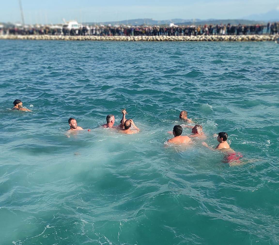 Με σύμμαχο τον πολύ καλό καιρό πραγματοποιήθηκε στο λιμάνι του Κατακόλου, η τελετή του Αγιασμού των Υδάτων και η κατάδυση του Τιμίου Σταυρού.