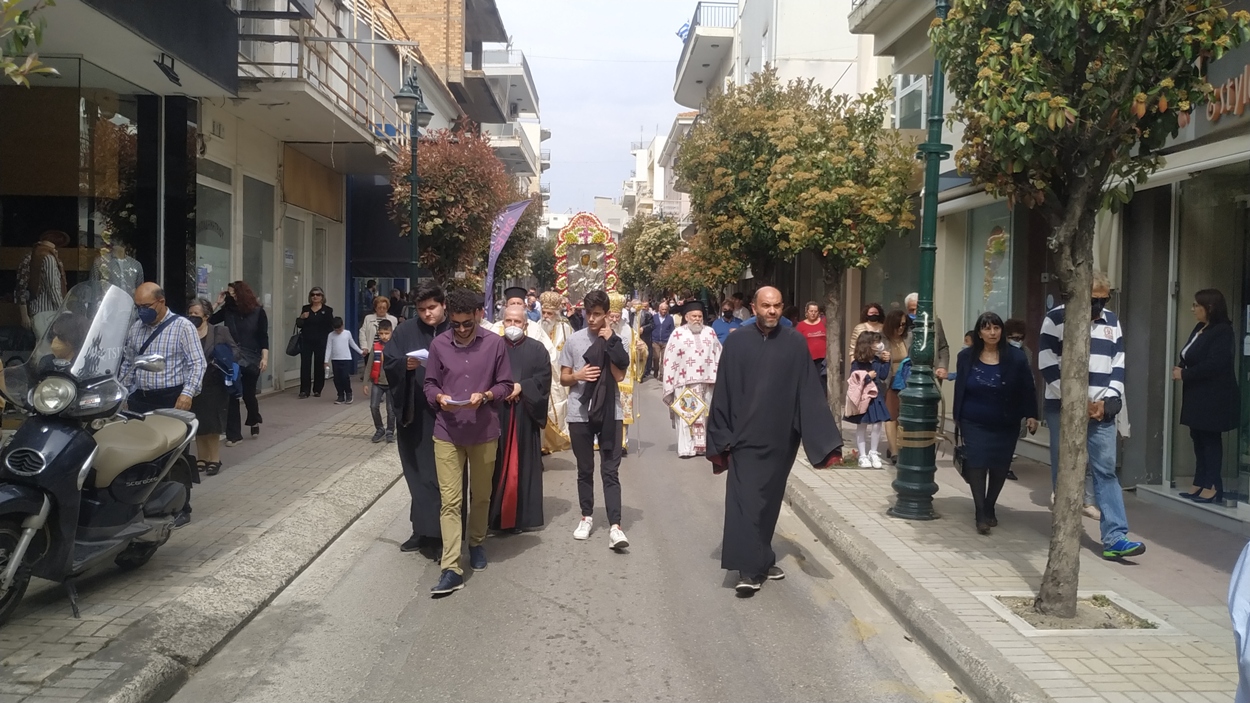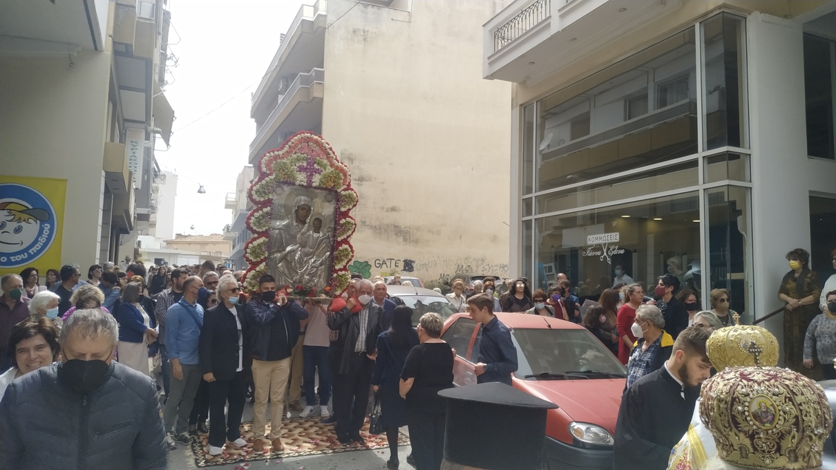 Μετά την Αναστάσιμη Πανηγυρική Θεία Λειτουργία ακολούθησε πάνδημη η λιτάνευση ,στα όρια της ενορίας του Αγίου Αθανασίου, της Ιερής Εικόνας την οποία συνόδευαν χιλιάδες πιστοί που έψελναν και αυτοί παράκληση για τη Θεοτόκο.