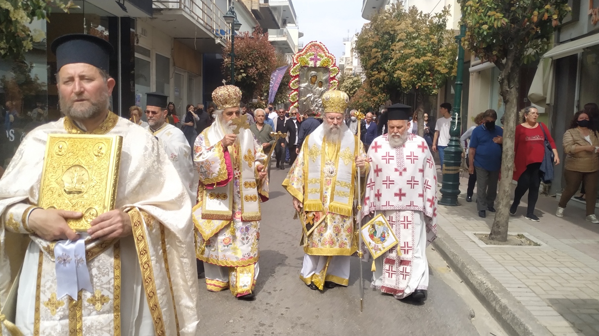 Μετά την Αναστάσιμη Πανηγυρική Θεία Λειτουργία ακολούθησε πάνδημη η λιτάνευση ,στα όρια της ενορίας του Αγίου Αθανασίου, της Ιερής Εικόνας την οποία συνόδευαν χιλιάδες πιστοί που έψελναν και αυτοί παράκληση για τη Θεοτόκο.