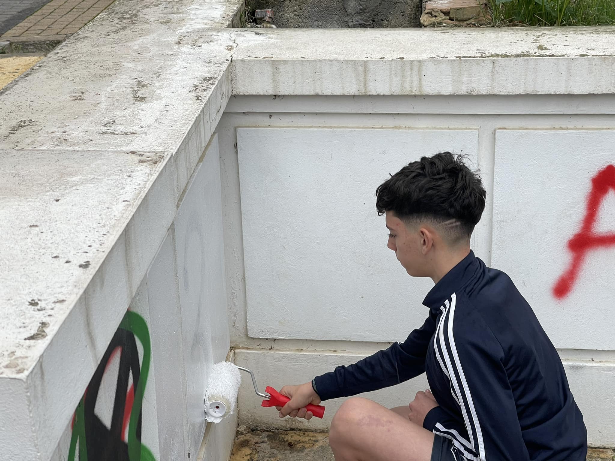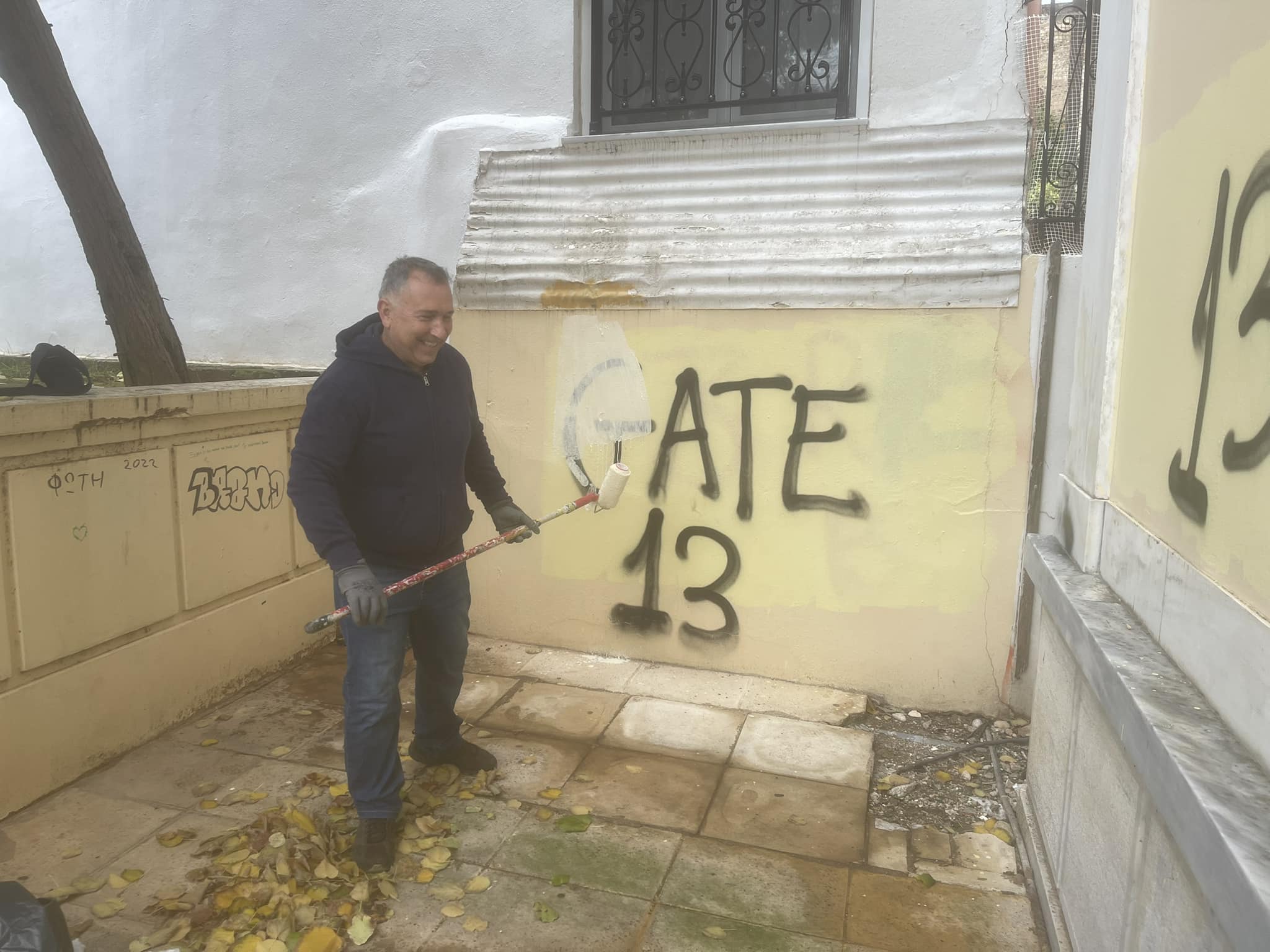 ✅Μαθητές από το 4ο Γυμνάσιο σε συνεργασία με μέλη του Γραφείου Εθελοντισμού προχώρησαν στον εξωτερικό ελαιοχρωματισμό του κτιρίου, προκειμένου να σβηστούν τα συνθήματα που είχαν γραφθεί στους τοίχους του νεοκλασικού αυτού θεάτρου.