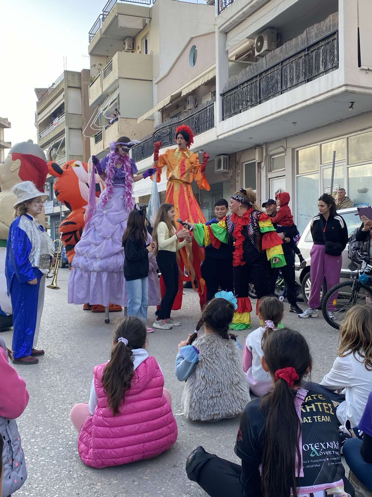 🚵 Το πρόγραμμα περιελάμβανε επίσης και την παρουσίαση μίας εντυπωσιακής παράστασης Θεάτρου Δρόμου με τίτλο «Το καρναβάλι των χρωμάτων» από την ομάδα «Τέχνης Δρώμενα», με την συμμετοχή ξυλοπόδαρων, ζογκλέρ και κλόουν.