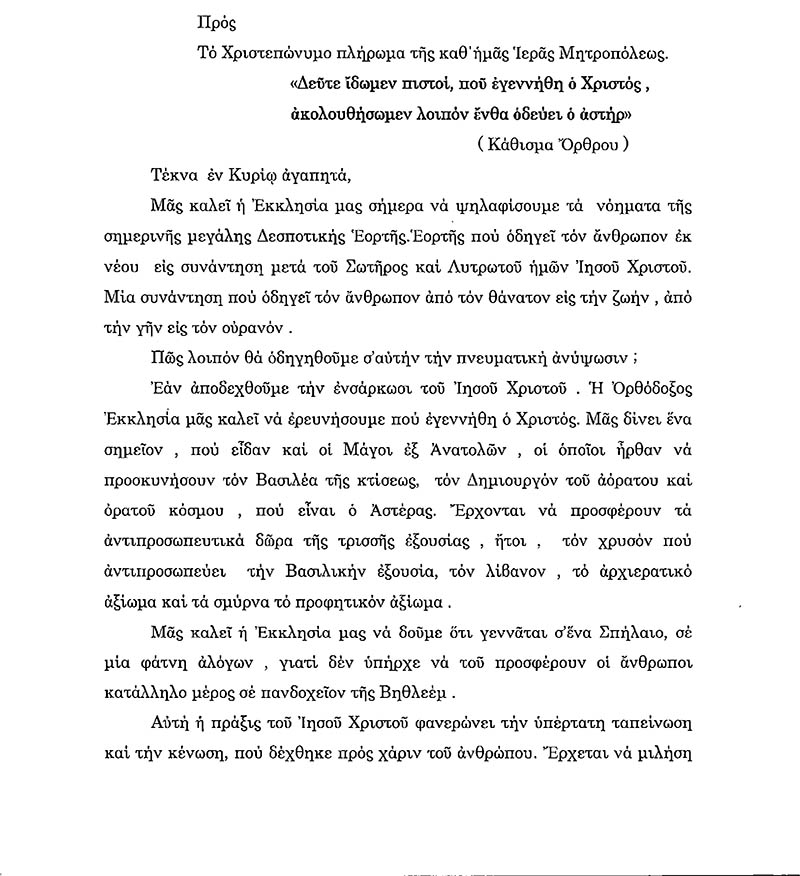 Μήνυμα Χριστουγέννων του Σεβασμιότατου Μητροπολίτη Ηλείας κ.κ. Αθανασίου Β’