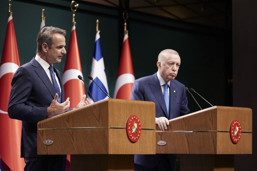 Ολοκληρώθηκε η συνάντηση και οι κοινές δηλώσεις του πρωθυπουργού Κυριάκου Μητσοτάκη με τον πρόεδρο της Τουρκίας, Ρετζέπ Ταγίπ Ερντογάν στο Λευκό Παλάτι στην Άγκυρα. Το κλίμα μεταξύ των δύο ηγετών ήταν θερμό αλλά υπήρξαν και τα «αγκάθια» στα οποία διαφώνησαν, όπως η μουσουλμανική μειονότητα της Θράκης, η μετατροπή της Μονής της Χώρας σε τζαμί και την Χαμάς.