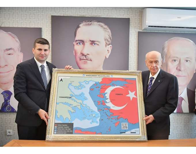 «Κοιτάξτε καλά αυτό τον χάρτη. Κρήτη, Ρόδος Λέσβος, Χίος και Σάμος όλα κατακτημένα από την Τουρκία. Παραληρηματικό όνειρο εξτρεμιστών ή επίσημη θέση της Τουρκίας; Ακόμα μια προβοκάτσια ή ο πραγματικός στόχος; Ο Πρόεδρος Ερντογάν να ξεκαθαρίσει την θέση του όσον αφορά στις τελευταίες γελοιότητες του μικρότερου εταίρου του».