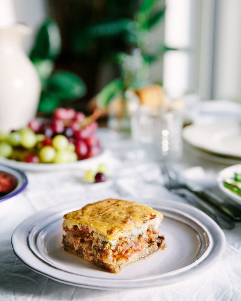 Μουσακάς με φουρνιστά λαχανικά και σπιτική μπεσαμέλ