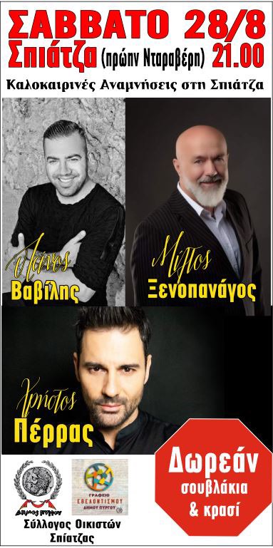 Συλλόγου Οικιστών Σπιάτζας, διοργανώνουν το Σάββατο 28/8 στις 21.00