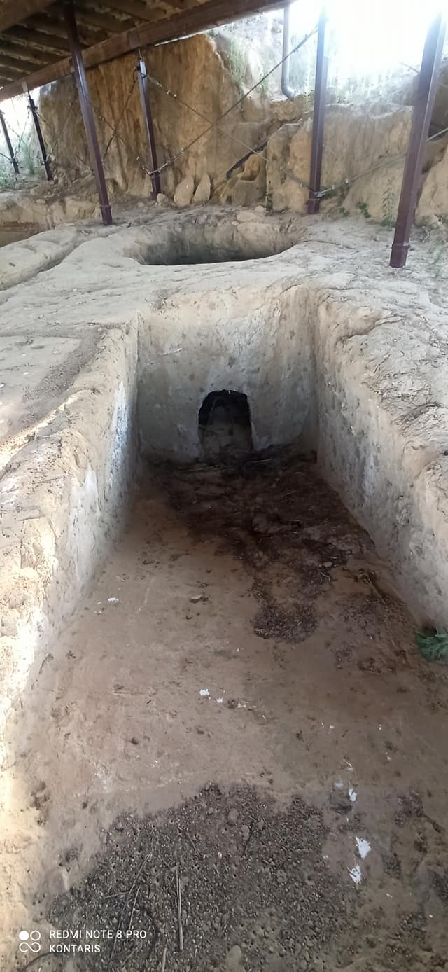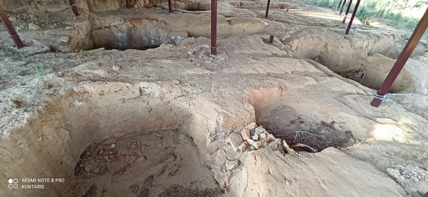 Το νεκροταφείο είναι οργανωμένο σε δύο συστάδες. Οι δώδεκα συνολικά θαλαμωτοί τάφοι που έχουν ανασκαφεί, είναι ανοιγμένοι στο ωχροκίτρινο μαλακό και συμπαγές έδαφος και έχουν προσανατολισμό Α-Δ.