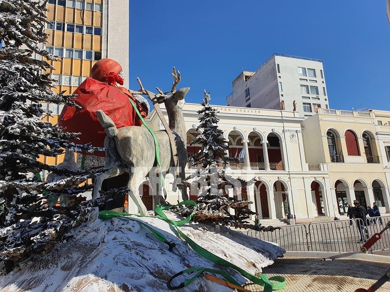 Στην Πάτρα ο εορταστικός διάκοσμος άναψε από τα τέλη Νοεμβρίου και σήμερα Τρίτη ολοκληρώθηκαν οι εργασίες του στην πλατεία Γεωργίου (φωτο).