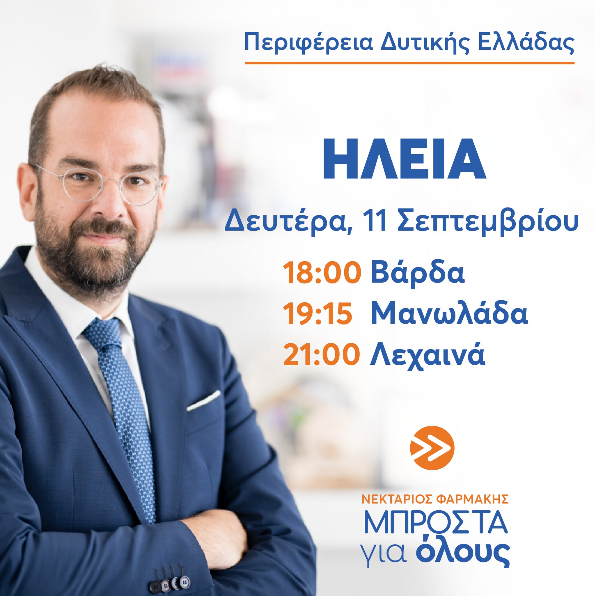 Ν. Φαρμάκης: Σήμερα σε Βάρδα, Μανωλάδα και Λεχαινά