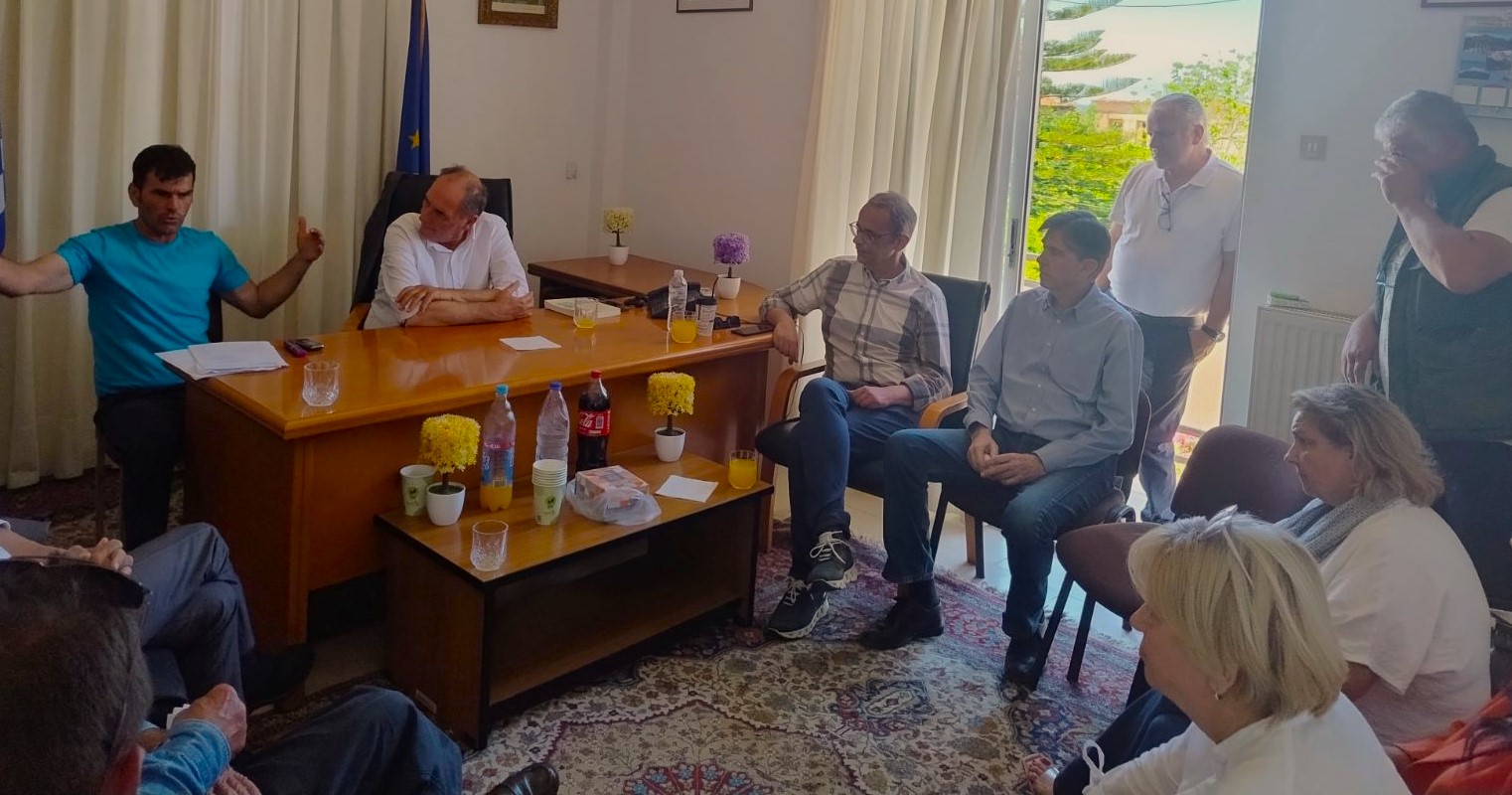 – το παλιό Δημαρχείο στο Επιτάλιο, στο οποίο συζήτησαν με τον Πρόεδρο της Τ.Κ. Παναγιώτη Πατσολιά, μέλη του Τοπικού Συμβουλίου και αγρότες της περιοχής για τα επίμαχα προβλήματα που σχετίζονται με τη διανομή των εκτάσεων της πρώην λίμνης Αγουλινίτσας και τα αναγκαία εγγειοβελτιωτικά έργα και έργα υποδομών,