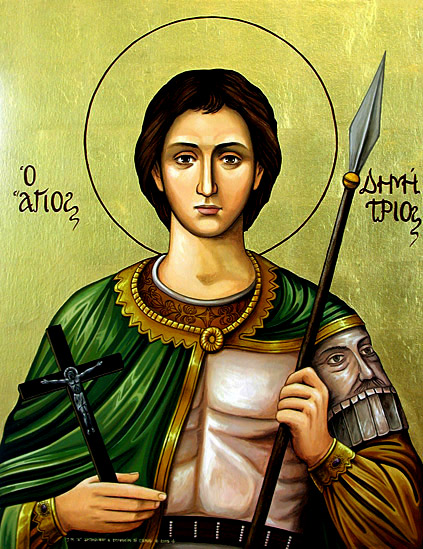 Ο Άγιος Δημήτριος, που γεννήθηκε περί το 280–284 μ.Χ. και πέθανε πιθανότατα το 306[1] στη Θεσσαλονίκη, αποτελεί έναν από τους Μεγαλομάρτυρες της Χριστιανοσύνης. Ο Δημήτριος ήταν γόνος αριστοκρατικής οικογένειας στη Θεσσαλονίκη. Aνελίχθηκε στις βαθμίδες του ρωμαϊκού στρατού με αποτέλεσμα σε ηλικία 22 ετών να φέρει το βαθμό του χιλιάρχου. Ως αξιωματικός του ρωμαϊκού στρατού κάτω από τη διοίκηση του Τετράρχη (και έπειτα αυτοκράτορα) Γαλερίου Μαξιμιανού, όταν αυτοκράτορας ήταν ο Διοκλητιανός, έγινε Χριστιανός και φυλακίστηκε στην Θεσσαλονίκη το 303, διότι αγνόησε το διάταγμα του αυτοκράτορα Διοκλητιανού «περί αρνήσεως του χριστιανισμού». Μάλιστα λίγο νωρίτερα είχε ιδρύσει κύκλο νέων προς μελέτη της Αγίας Γραφής.