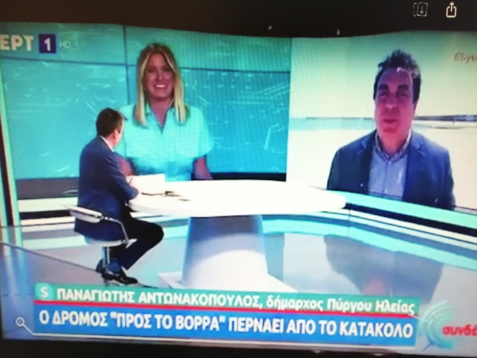 Στην πρωινή ενημερωτική εκπομπή της ΕΡΤ1 «Συνδέσεις» φιλοξενήθηκε ο δήμαρχος Πύργου Παναγιώτης Αντωνακόπουλος την Τρίτη 11/5/2021. Σε ζωντανή σύνδεση από το λιμάνι του Κατακόλου μίλησε στους οικοδεσπότες της εκπομπής Κώστα Παπαχλιμίντζο και Αλεξάνδρα Καϋμένου, για τα γυρίσματα της ταινίας «To the North» του Ρουμάνου σκηνοθέτη Mihai Mincan που ξεκινούν σύντομα (το αργότερο μέχρι τέλος της εβδομάδας) στην περιοχή.