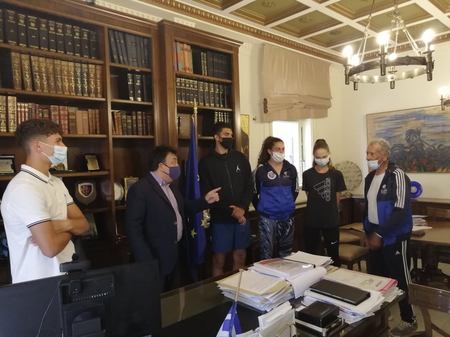 Σε μια λιτή και σεμνή τελετή, όπου η περηφάνια και η συγκίνηση που χάρισαν αυτά τα νέα παιδιά περίσσευε, ο δήμαρχος Πύργου υποδέχτηκε στο γραφείο του τους πρωταθλητές Δημήτρη Τσαμπά (χρυσό μετάλλιο στο Δέκαθλο Κ18 – σωματείο ΑΝΑΓΕΝΝΗΣΙΣ ΠΥΡΓΟΥ), και Μαργαρίτα Τσουκαλά (χρυσό μετάλλιο στο Έπταθλο Κ23 – σωματείο ΑΠΟΛΛΩΝ ΠΥΡΓΟΥ) και τους διακριθέντες Νίκη Ποϊραζίδη (ασημένιο μετάλλιο στο Έπταθλο Κ18 – σωματείο ΑΠΟΛΛΩΝ ΠΥΡΓΟΥ) και Νώντα Γεωργακόπουλο (χάλκινο μετάλλιο στο Δέκαθλο Κ23 – σωματείο ΑΠΟΛΛΩΝ ΠΥΡΓΟΥ) καθώς και τους προπονητές τους Σάκη Καίσαρη και Θανάση Παπαγρηγορίου για να τους ευχαριστήσει και να τους τιμήσει για τις διακρίσεις τους και να επιβραβεύσει τις επίμονη και επίπονη προσπάθειά τους χάρη στην οποία ξεχώρισαν.