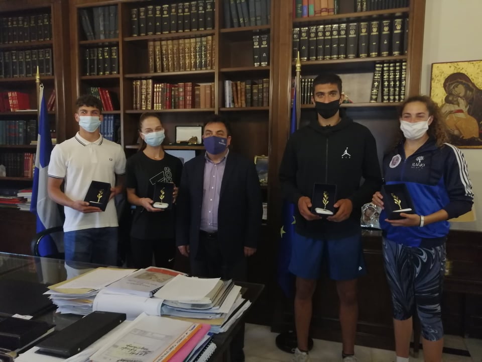 Σε μια λιτή και σεμνή τελετή, όπου η περηφάνια και η συγκίνηση που χάρισαν αυτά τα νέα παιδιά περίσσευε, ο δήμαρχος Πύργου υποδέχτηκε στο γραφείο του τους πρωταθλητές Δημήτρη Τσαμπά (χρυσό μετάλλιο στο Δέκαθλο Κ18 – σωματείο ΑΝΑΓΕΝΝΗΣΙΣ ΠΥΡΓΟΥ), και Μαργαρίτα Τσουκαλά (χρυσό μετάλλιο στο Έπταθλο Κ23 – σωματείο ΑΠΟΛΛΩΝ ΠΥΡΓΟΥ) και τους διακριθέντες Νίκη Ποϊραζίδη (ασημένιο μετάλλιο στο Έπταθλο Κ18 – σωματείο ΑΠΟΛΛΩΝ ΠΥΡΓΟΥ) και Νώντα Γεωργακόπουλο (χάλκινο μετάλλιο στο Δέκαθλο Κ23 – σωματείο ΑΠΟΛΛΩΝ ΠΥΡΓΟΥ) καθώς και τους προπονητές τους Σάκη Καίσαρη και Θανάση Παπαγρηγορίου για να τους ευχαριστήσει και να τους τιμήσει για τις διακρίσεις τους και να επιβραβεύσει τις επίμονη και επίπονη προσπάθειά τους χάρη στην οποία ξεχώρισαν.