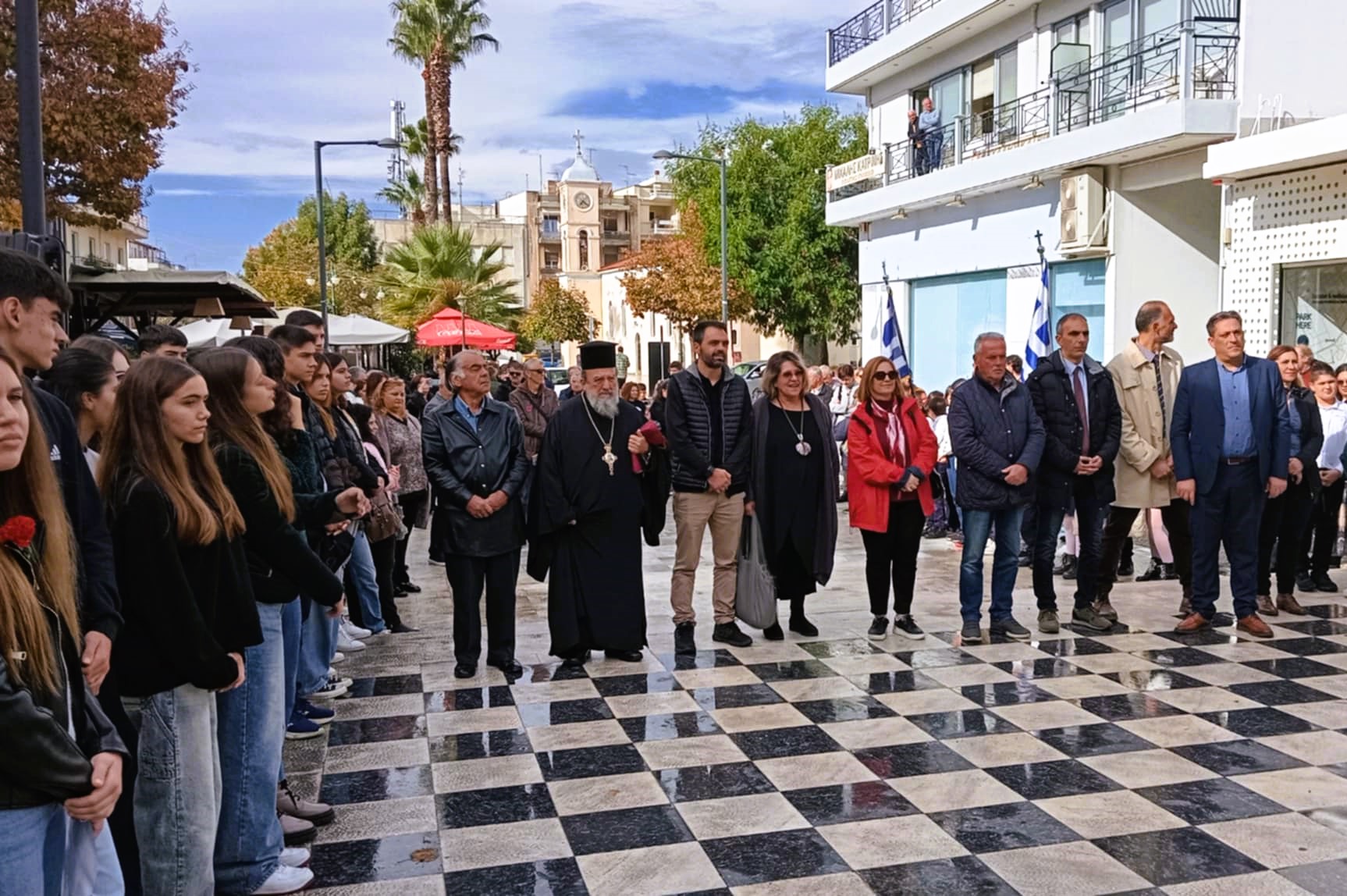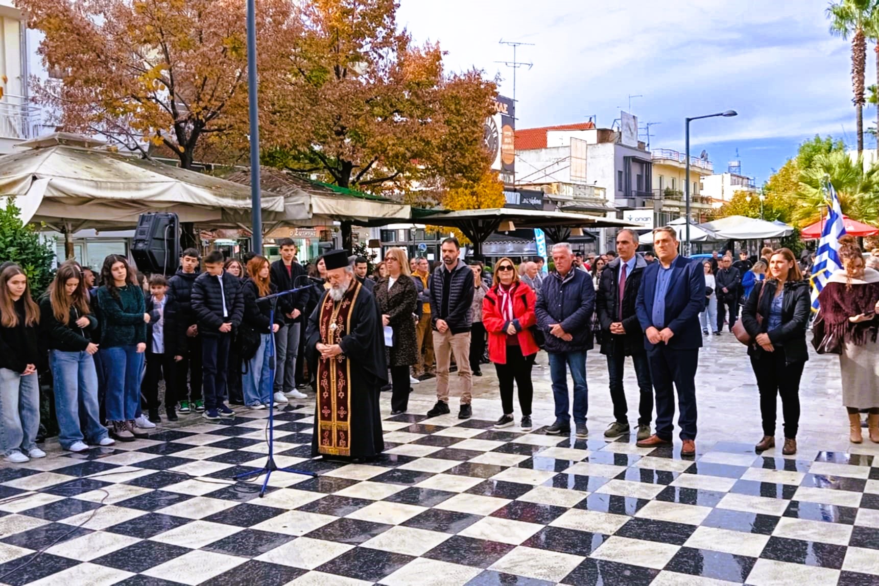 🌹 Από νωρίς το πρωί της Παρασκευής πραγματοποιήθηκαν εκδηλώσεις σε όλα τα σχολεία της πόλης, ενώ στη συνέχεια μαθητές και εκπαιδευτικοί μετέβησαν στο μνημείο Ηρώων, όπου τελέστηκε επιμνημόσυνη δέηση από τον εφημέριο του Ιερού Ναού του Αγίου Αθανασίου π. Αλέξιου Αναγνωστόπουλου.
