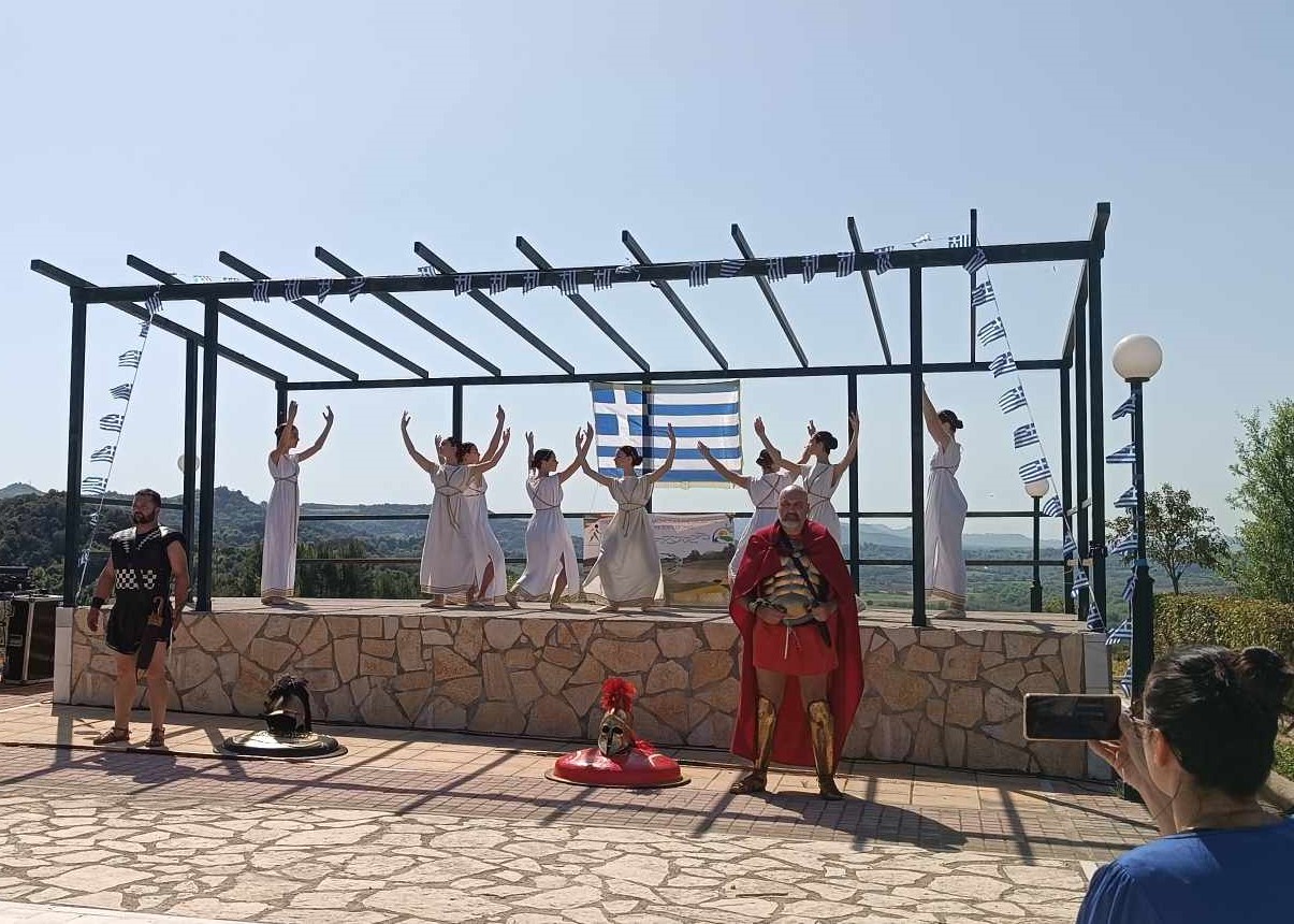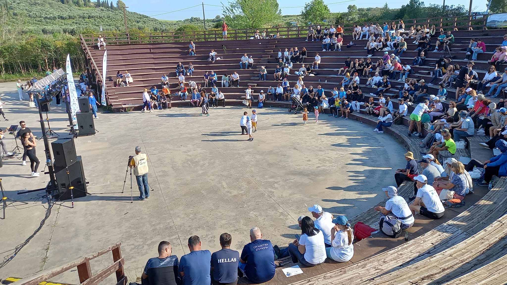Όσοι βρέθηκαν στο θέατρο της Αρχαίας Ήλιδας είχαν -μεταξύ άλλων- την ευκαιρία να ξεναγηθούν στην έκθεση ζωγραφικής, με θέμα της Ολυμπιακή Εκεχειρία.