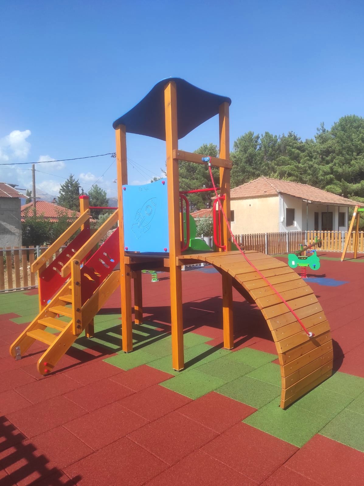 Στην πρώτη καινούρια παιδική χαρά της νέας Δημοτικής Αρχής, η οποία πληροί όλες τις προδιαγραφές ασφαλείας σύμφωνα µε την κείμενη νομοθεσία, τοποθετήθηκαν τσουλήθρες, κούνιες, τραμπάλες, ελαστικό δάπεδο, παγκάκι, ασφαλής περίφραξη, κ.α. και έγιναν όλες οι απαραίτητες παρεμβάσεις και αλλαγές για την αναβάθμιση της παιδικής χαράς.