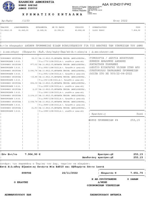 Το έχουμε ξαναπεί…Χάθηκαν τα βιβλιοπωλεία στο Πύργο; Και σας προλαβαίνω στην απάντηση (θα μου πείτε ότι αυτά είναι είδη ανοιχτού διαγωνισμού του 2021 που εκτελείτε τώρα), ότι ανοιχτό διαγωνισμό ΔΕΝ κάνατε ΠΟΤΕ για τα υλικά των αυτοκινήτων που είναι πάνω από ΕΚΑΤΟΜΜΥΡΙΟ , ανοιχτό διαγωνισμό ΔΕΝ κάνατε στα αντισηπτικά κλπ είδη που έχει σχεδόν μονοπώλιο (και εδώ κοντά στο εκατομμυριάκι πρέπει να είμαστε 3 χρόνια