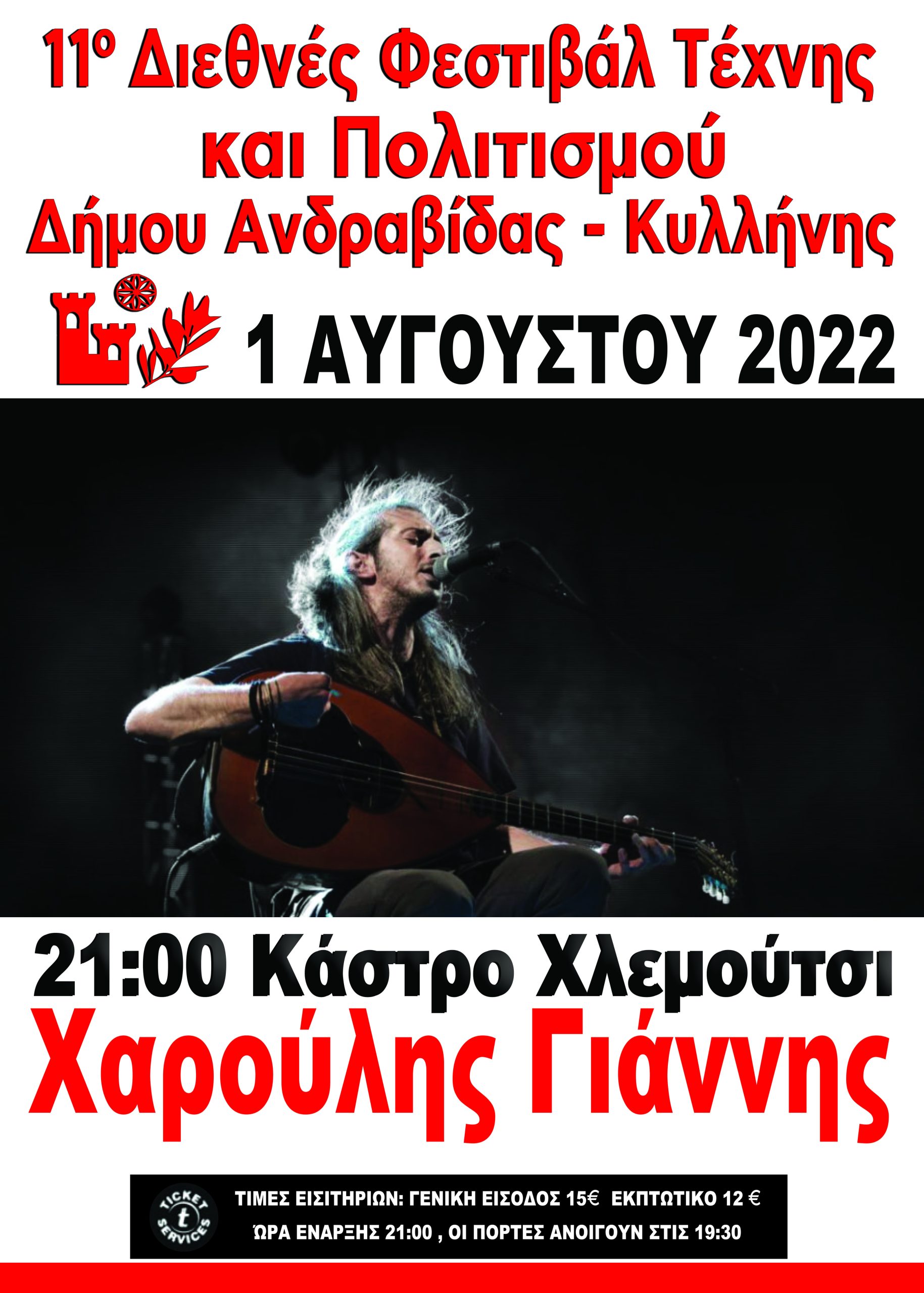 Το Κάστρο Χλεμούτσι υποδέχεται αύριο, Δευτέρα 1 Αυγούστου, τον Γιάννη Χαρούλη στην συναυλία του καλοκαιριού από το 11ο Διεθνές Φεστιβάλ Ανδραβίδας-Κυλλήνης. Ο Γιάννης Χαρούλης υπόσχεται να μας παρασύρει με όσα τραγούδια έχουμε αγαπήσει και να μας συστήσει και καινούργια, από το νέο του δίσκο «ΚΟΛΙΜΠΡΙ». Ένα άλμπουμ γεμάτο με σκέψεις και συναισθήματα που μας θυμίζουν ότι όσες δυσκολίες και αν βιώνουμε όταν «μοιραζόμαστε», «εκφραζόμαστε» και «επικοινωνούμε» η δύναμή μας πολλαπλασιάζεται.