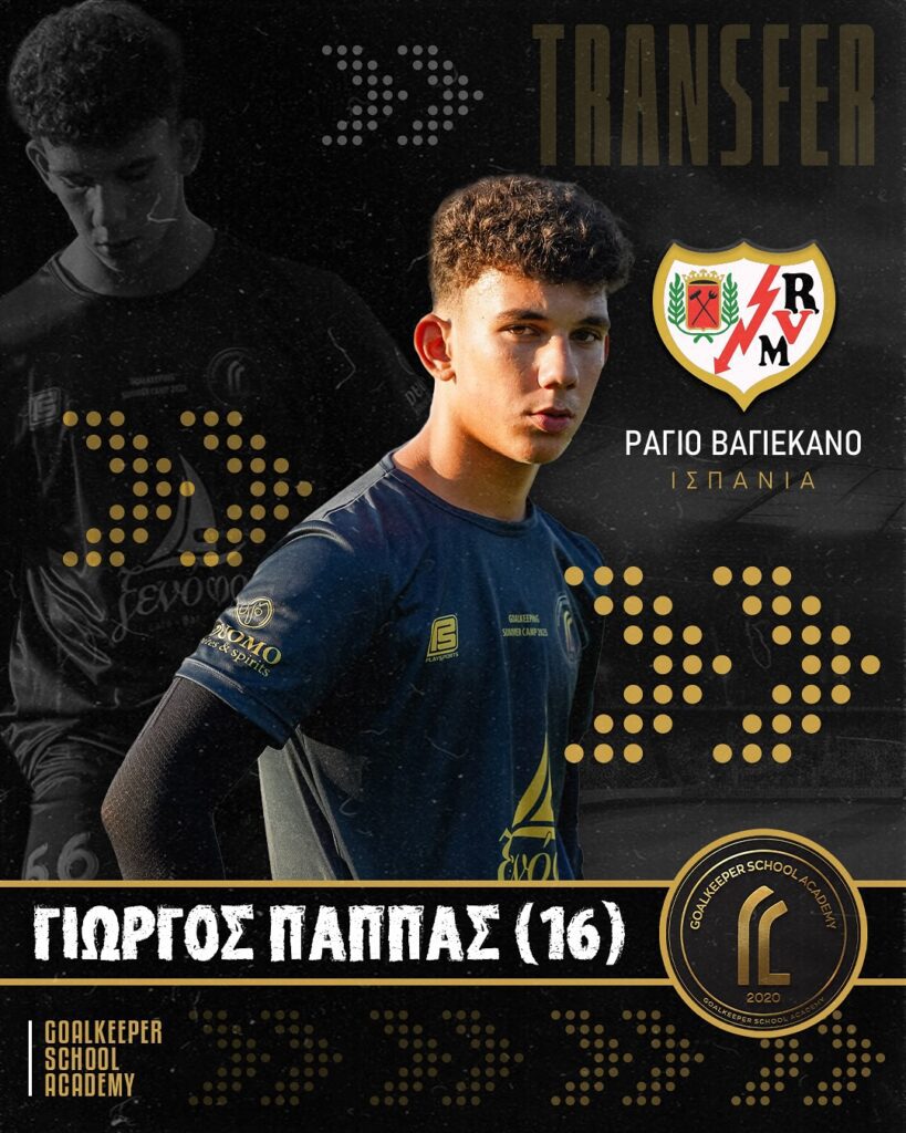 Η ανακοίνωση της Goalkeeper School Academy: «Μια μεγάλη διάκριση για την ακαδημία μας είναι γεγονός, και συγχρόνως μια μέρα χαράς. Ένας δικός μας αθλητής, ο οποίος έκανε τα πρώτα του βήματα κοντά μας, δούλεψε σκληρά για χρόνια και βελτιώθηκε, έκανε ένα μεγάλο άλμα στην καριέρα του. Ο 16χρονος Γιώργος Παππάς θα συνεχίσει την καριέρα του στην Ισπανία, όπου θα φορά τη φανέλα της Ράγιο Βαγιεκάνο U19. Ο Γιώργος Παππάς, γεννημένος στις 8/6/2009, αξιολογήθηκε από μεγάλα clubs της Ισπανίας, όπως η Atlético Μαδρίτης και η Ρεάλ Βαγιαδολίδ. Πρόσφατα, μετέβη στην Ισπανία για προπονήσεις και δοκιμές στην ομάδα της Μαδρίτης, όπου αξιολογήθηκε από το τεχνικό επιτελείο. Αποτέλεσμα αυτού ήταν να επιλεγεί από μια από τις πιο σημαντικές ομάδες της ισπανικής πρωτεύουσας και ολόκληρης της χώρας, τη Ράγιο Βαγιεκάνο, για να ενταχθεί στην αναπτυξιακή της ομάδα. Η Goalkeeper School Academy συγχαίρει θερμά τον αθλητή της για τη σπουδαία μεταγραφή του σε μια χώρα με προηγμένες ποδοσφαιρικές υποδομές, η οποία φημίζεται για την οργάνωση και τη συνεχή ανάδειξη σπουδαίων ποδοσφαιριστών από τα μικρά τμήματα των συλλόγων. Αξιοσημείωτο είναι ότι θα αγωνιστεί σε έναν σύλλογο που συμμετέχει στη μεγάλη κατηγορία, τη διάσημη La Liga, με εξαιρετικά αποτελέσματα. Σημαντικό ρόλο στην επίτευξη αυτής της μετακίνησης έπαιξε ο επικεφαλής της Athens Goalkeeper Academy, Χρήστος Λάμπρου. Νιώθουμε υπερήφανοι για τον αθλητή μας. Η σκληρή δουλειά, η προσήλωση στους στόχους, η υπομονή και η επιμονή επιβραβεύονται. Γιώργο, σου ευχόμαστε καλή σταδιοδρομία! Nuestro Rayista, buena suerte!».