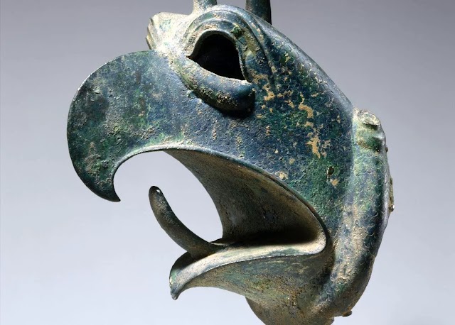 | Χάλκινο κεφάλι γρύπα του 7ου π.Χ. αιώνα από την αρχαία Ολυμπία, που επαναπατρίζεται από το Μητροπολιτικό Μουσείο Νέας Υόρκης |