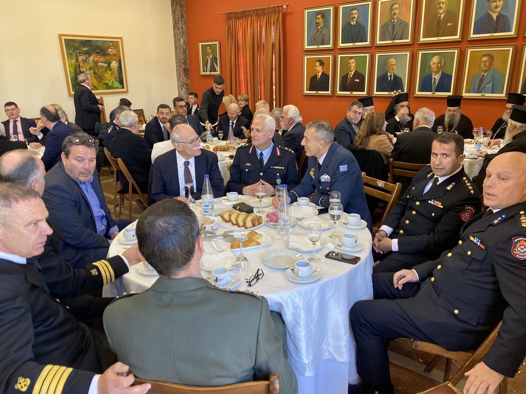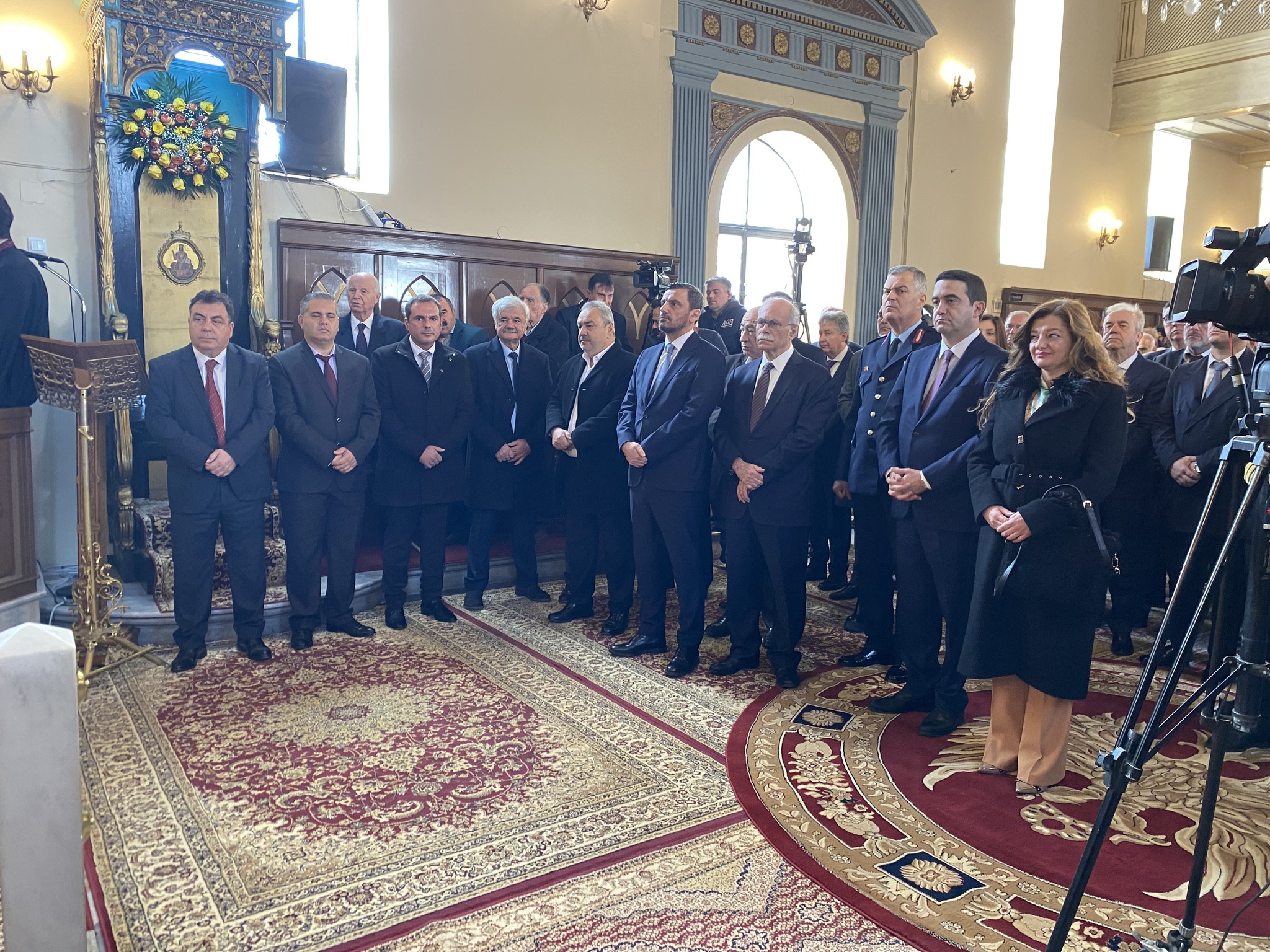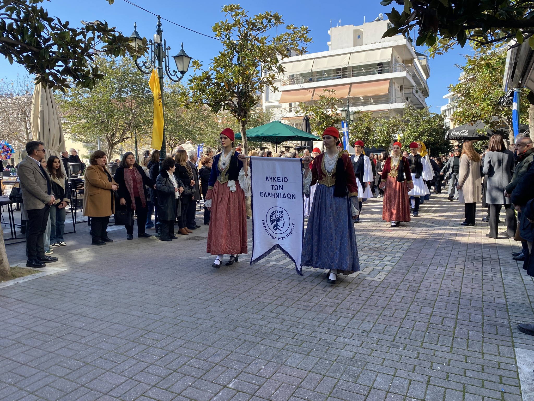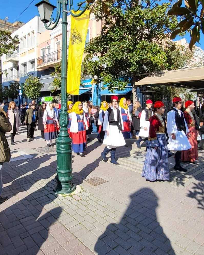 εικόνα από την λιτανεία της εικόνας του Αγίου στον Πύργο όπου συμμετέχουν φορείς και σύλλογοι με παραδοσιακές στολές
