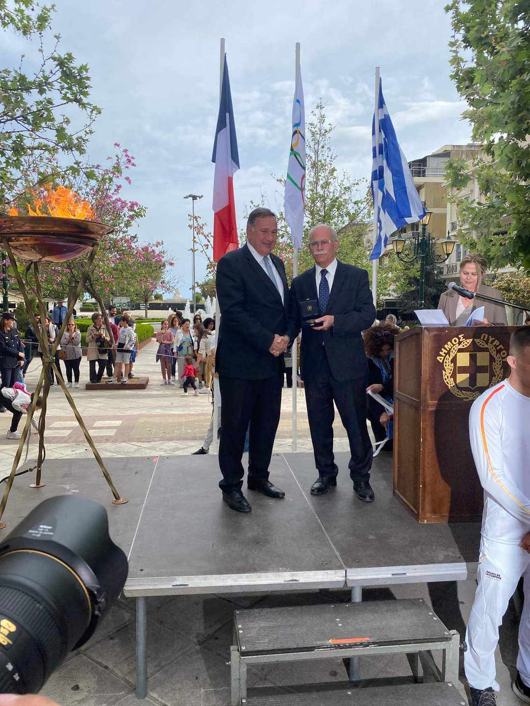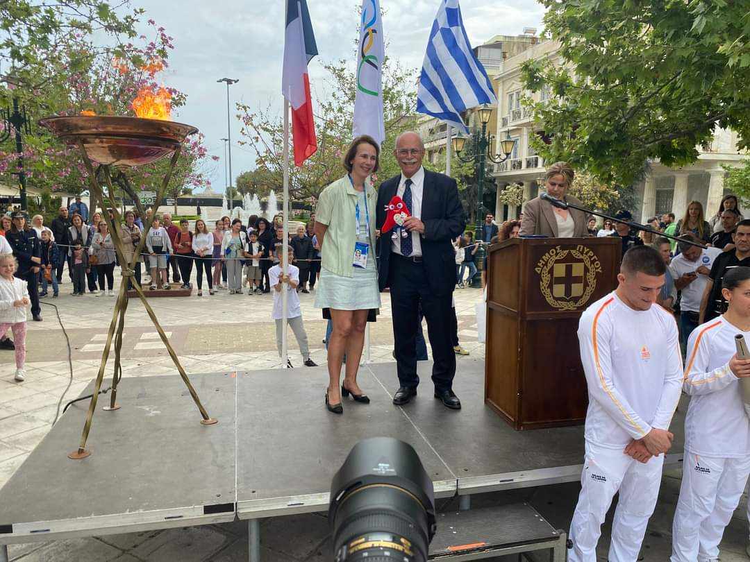 Η Φλόγα ξεκίνησε από τις κοίτες του Αλφειού, που εκβάλλει λίγο πιο πέρα, στα όρια του Δήμου μας, για να φτάσει στις κοίτες του Σηκουάνα. Στα χώματα μιας χώρας και μιας πόλης, του Παρισιού, που υπήρξαν υποδοχείς του πνεύματος του Ελληνικού Πολιτισμού εδώ και αιώνες. Για να φωτίσει τα χώματα που ανέστησαν τον πρωτοπόρο του Ολυμπιακού Κινήματος, τον Βαρόνο Πιερ Ντε Κουμπερτέν, του οποίου η καρδιά είναι δίπλα μας, ως σημείο διαρκούς υπόμνησης ότι ο Ολυμπισμός αποτελεί μία βαριά κληρονομιά.