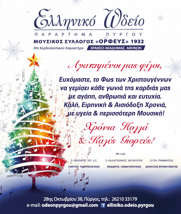 Ωδείο Πύργου: Ευχές για τα Χριστούγεννα & την Πρωτοχρονιά
