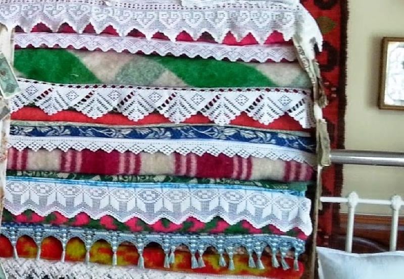 Ένα μεγάλο λευκό και καθαρό σεντόνι, καρφιτσωμένο με παραμάνες, σκέπαζε και τύλιγε το γιούκο πολύ προσεγμένα, τον προφύλασσε από τη σκόνη και κάλυπτε κάθε ατέλεια. Τις γιορτινές μέρες, που στο σπίτι μπαινόβγαινε κόσμος, το σεντόνι έβγαινε, και αποκαλυπτόταν έτσι μια πανδαισία χρωμάτων στα υφαντά, στολισμένη με δαντέλλες, που έδινε στο γιούκο μια ανείπωτη χάρη!