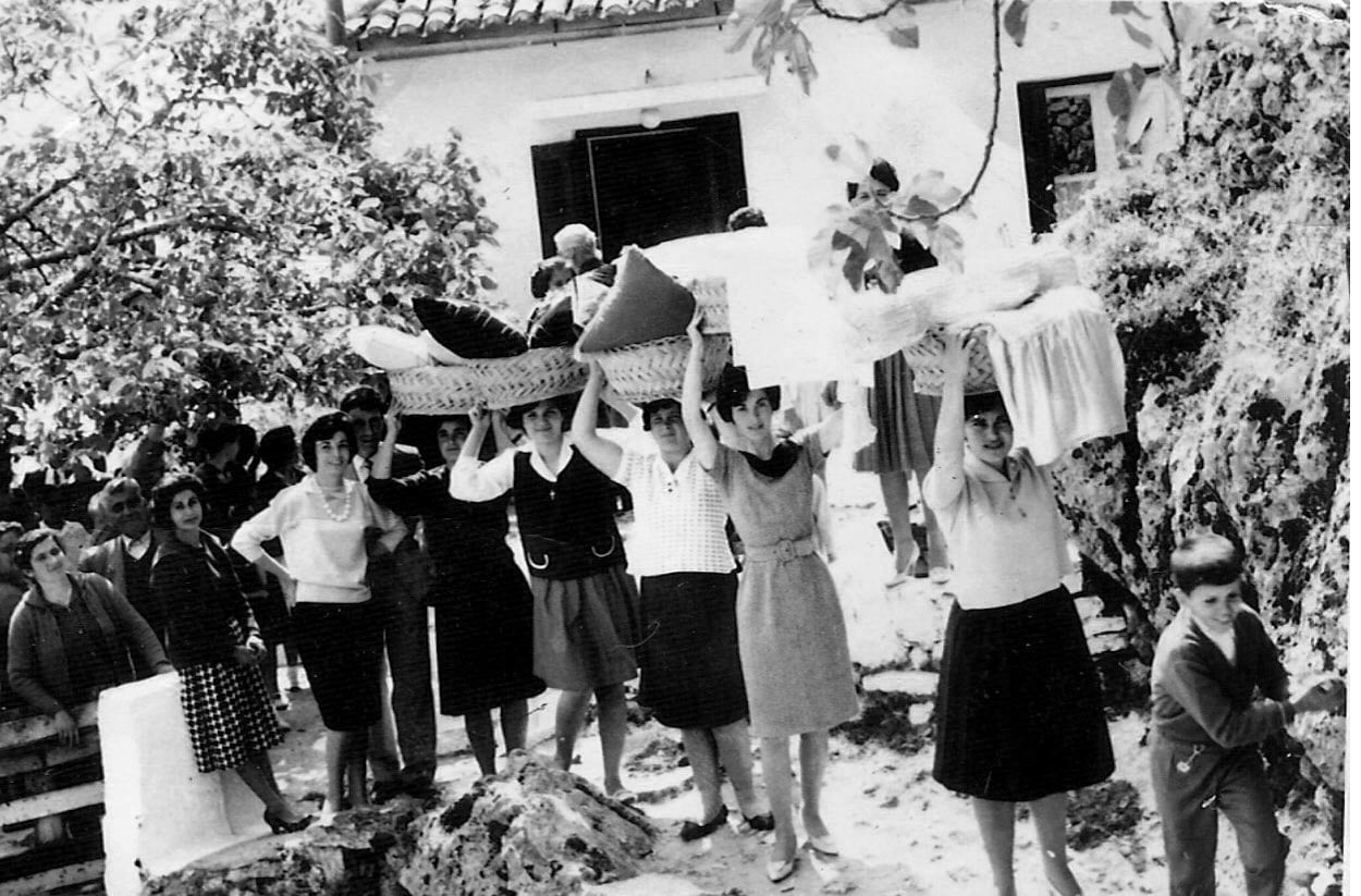 Το Σάββατο το απόγευμα τα προικιά της νύφης μεταφερόντουσαν στο σπίτι του γαμπρού. Την γαμήλια πομπή με τα προικιά παρακολουθούσε όλο το χωριό, για να τα θαυμάσουν και να τα ράνουν με ρύζι και λουλούδια.