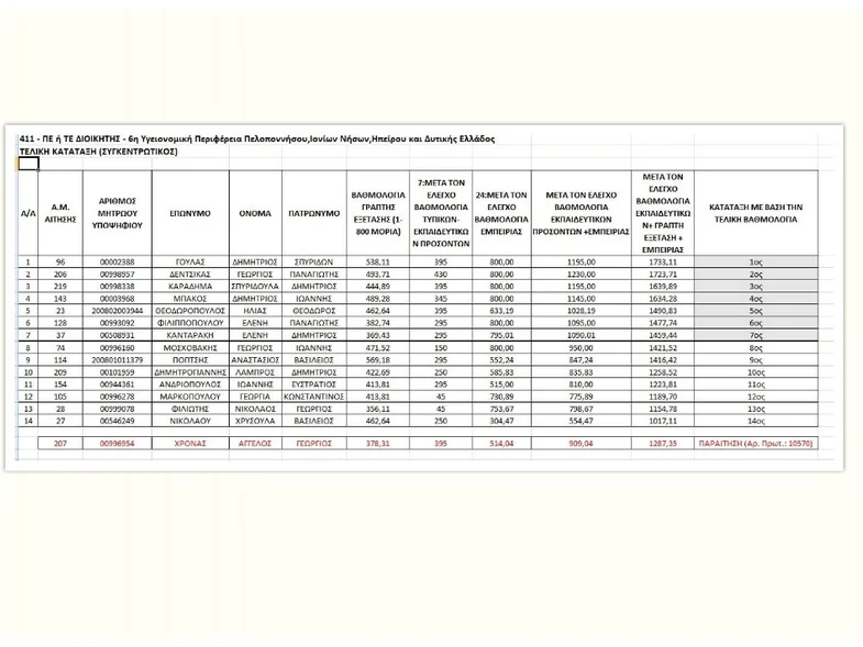 Στον «αέρα» έδωσε το ΑΣΕΠ τις τελικές λίστες με τους υποψήφιους Διοικητές ΥΠΕ που πέρασαν από τον γραπτό διαγωνισμό και προκρίθηκαν ώστε να κληθούν σε προσωπική συνέντευξη.