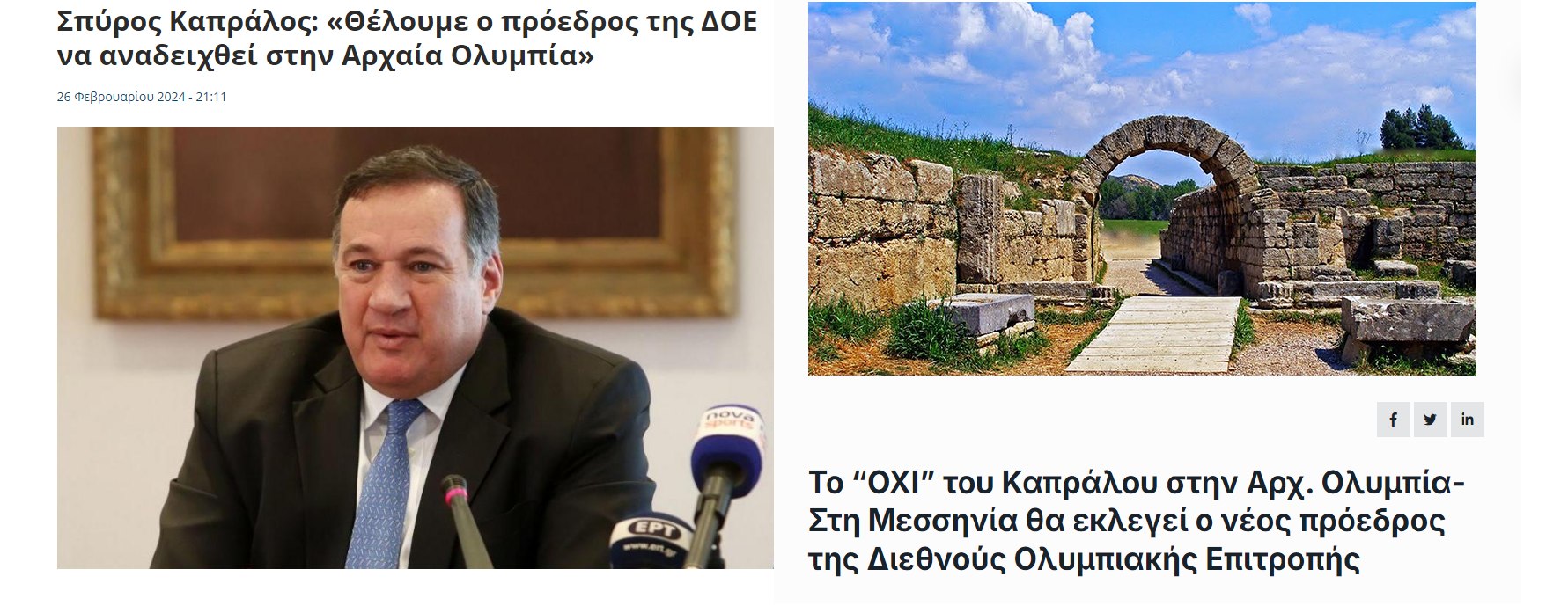 • και αν την πληροφορήθηκαν ουδέν έπραξαν … ούτε συναντήθηκαν με τον Μεσσήνιο Προέδρο της ΕΟΕ Σπ. Καπράλο, ούτε επισκέφθηκαν τον Προέδρο της ΔΟΑ Thomas Bach (στην 137η Σύνοδο της ΔΟΕ στις 21.03.2021 είχε αποφασιστεί η διοργάνωση στην Ελλάδα της εκλογικής Συνόδου για τον Προέδρο να πραγματοποιηθεί στην Αρχ. Ολυμπία), ούτε μίλησαν,, άλλαξαν πλευρό και κοιμήθηκαν