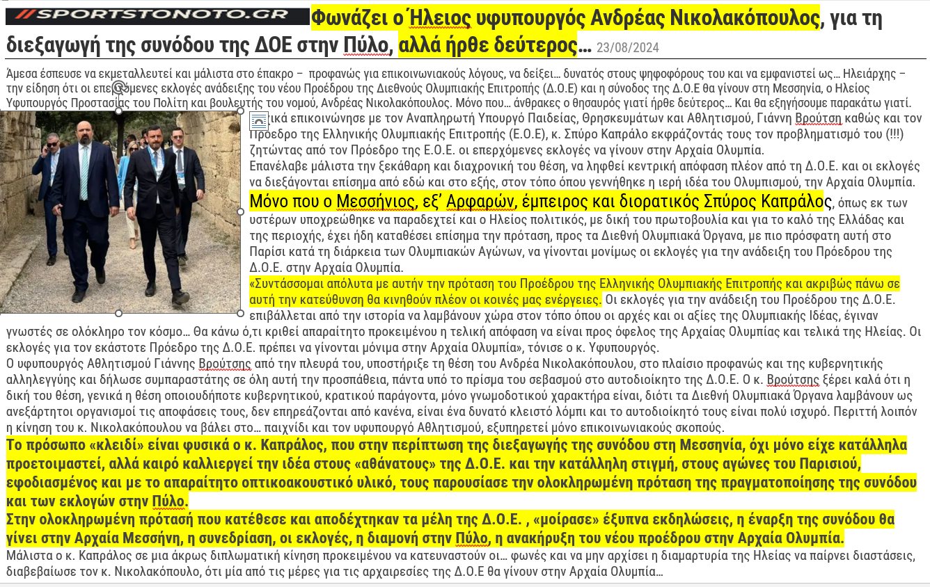 UP (24.08.2024).. εκδηλώνοντας την δουλοπρέπεια τους προετοιμάζουν την αποδοχή της υφαρπαγής με κάτι στην Αρχ. Ολυμπία από το όλον των εκδηλώσεων της Μεσσηνίας