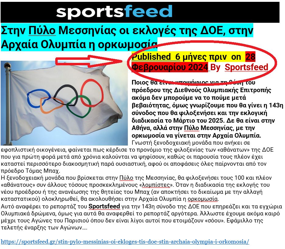• και αν την πληροφορήθηκαν ουδέν έπραξαν … ούτε συναντήθηκαν με τον Μεσσήνιο Προέδρο της ΕΟΕ Σπ. Καπράλο, ούτε επισκέφθηκαν τον Προέδρο της ΔΟΑ Thomas Bach (στην 137η Σύνοδο της ΔΟΕ στις 21.03.2021 είχε αποφασιστεί η διοργάνωση στην Ελλάδα της εκλογικής Συνόδου για τον Προέδρο να πραγματοποιηθεί στην Αρχ. Ολυμπία), ούτε μίλησαν,, άλλαξαν πλευρό και κοιμήθηκαν