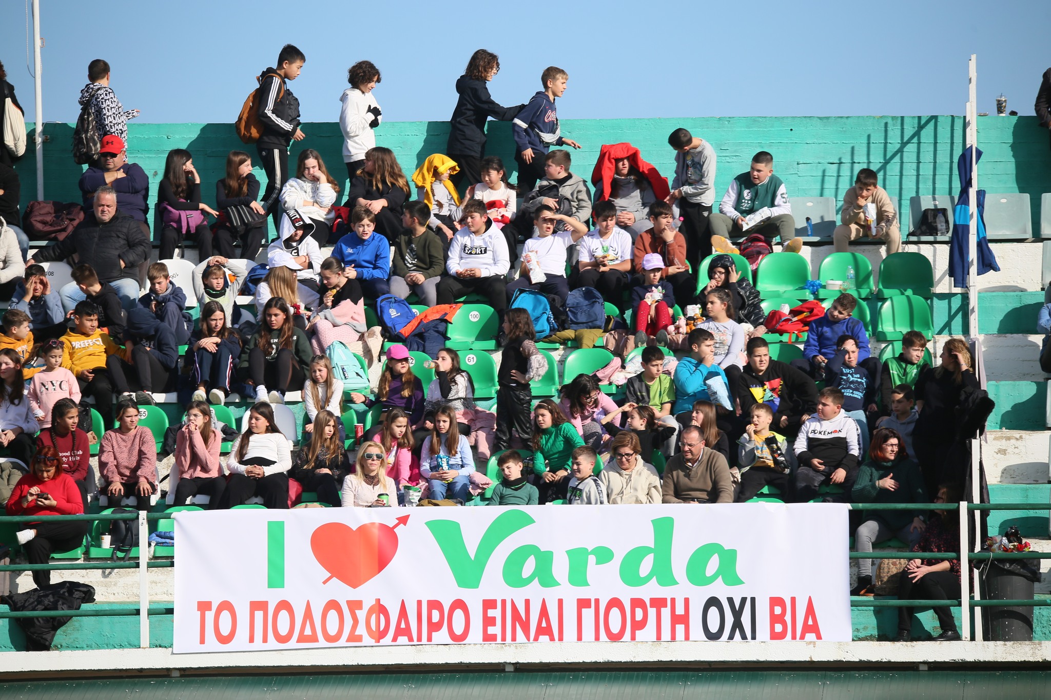 Το δικό τους μήνυμα ενάντια στη βία στα γήπεδα έστειλαν σήμερα οι μαθητές των σχολείων της Βάρδας, που βρέθηκαν στο γήπεδο της πόλης για να παρακολουθήσουν τον αγώνα ανάμεσα στον ΠΑΟΒ και την Ελλάδας Σύρου, στο πλαίσιο της 16ης αγωνιστικής του πρωταθλήματος της Γ’ Εθνικής.