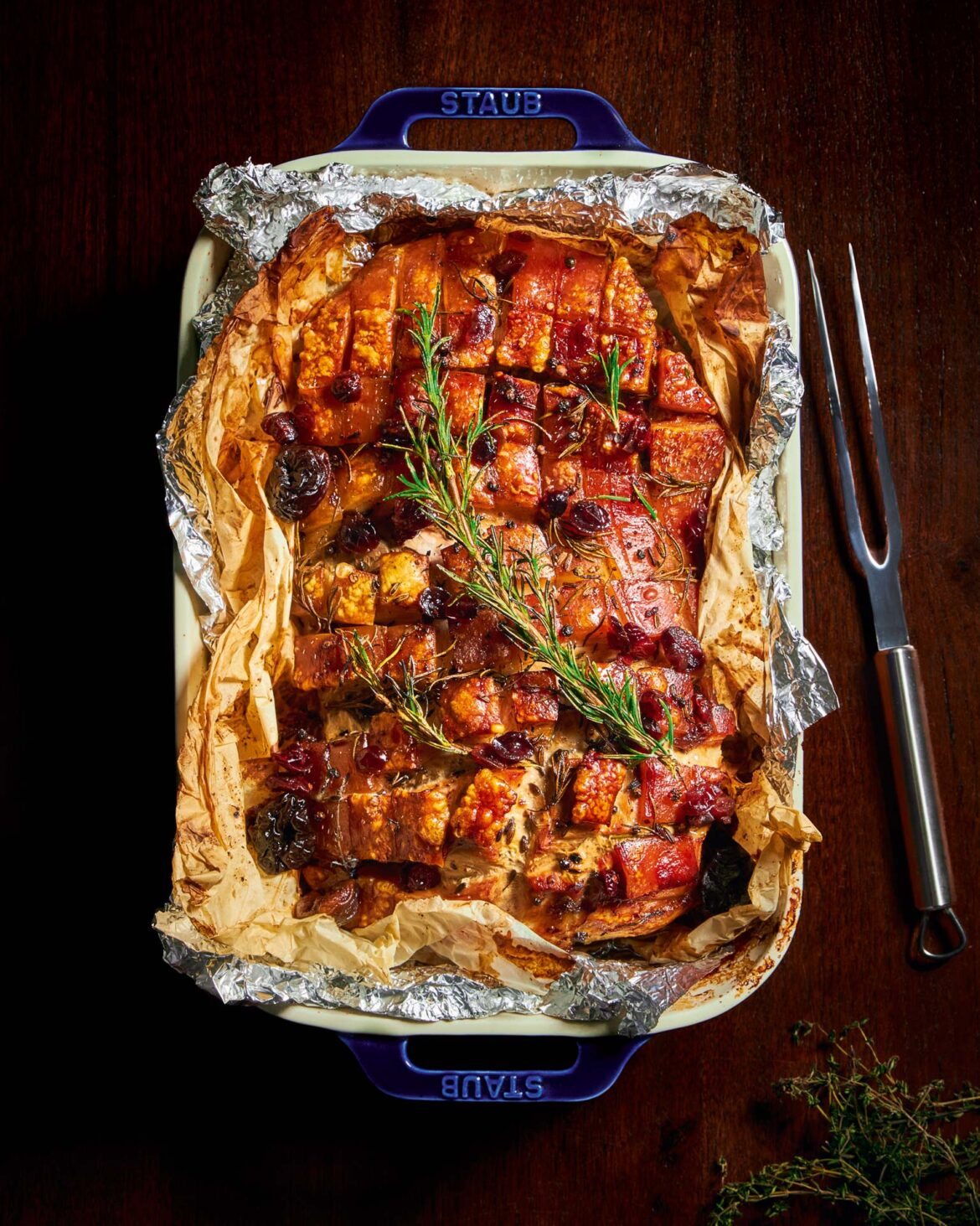 Αγριογούρουνο στη λαδόκολλα με ξερά φρούτα, μπαχαρικά και μαστίχα