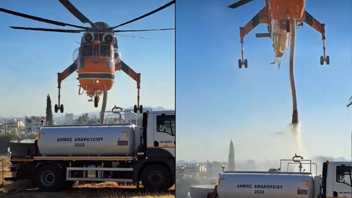 Σε βίντεο που δημοσιεύθηκε στο facebook, φαίνεται ένας πιλότος με απίστευτες ικανότητες και περισσεύματα θάρρους και αυταπάρνησης, να καταφέρνει να ισορροπεί το Έρικσον στην δεξαμενή πάνω από μία υδροφόρα του Δήμου Αμαρουσίου και να κάνει υδροληψία λίγα μέτρα πάνω από το έδαφος μέσα σε φοβερό αέρα.
