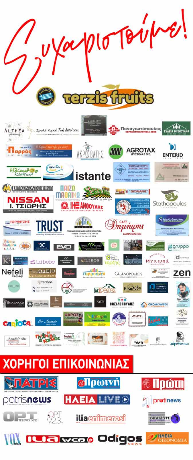 Οι σύλλογοι Γονέων και Κηδεμόνων Πρωτοβάθμιας και Δευτεροβάθμιας Εκπαίδευσης θέλουν να ευχαριστήσουν από καρδιάς, όλους όσους ήδη «αγκάλιασαν» την εκδήλωση και στηρίζουν την μεγάλη προσπάθεια μέσω χορηγιών.