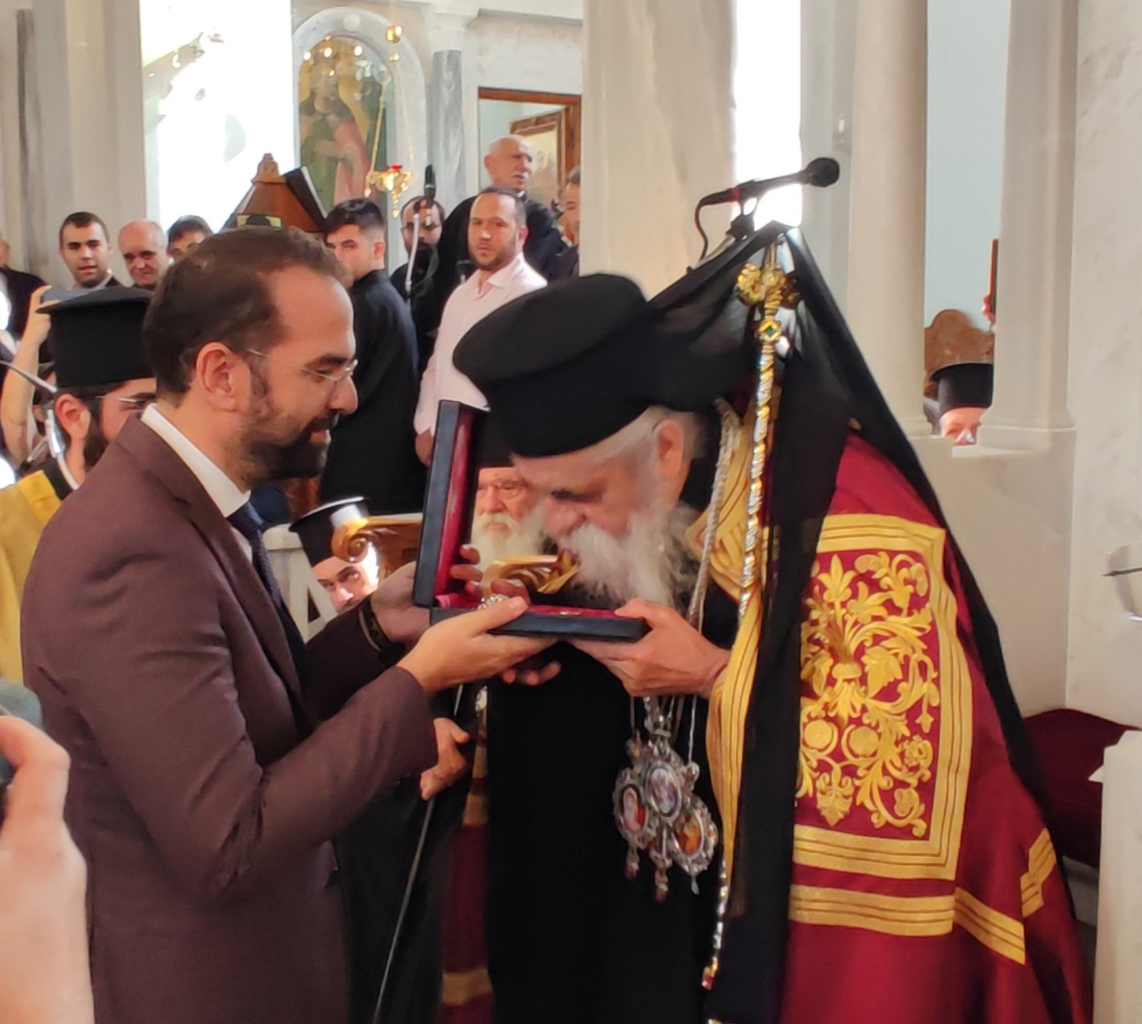 Θα μου επιτρέψτε, σε ανάμνηση της ιστορικής αυτής ημέρας, να σας προσφέρω ένα Αρχιερατικό Εγκόλπιο, ως ελάχιστο δείγμα της αφοσίωσης και του σεβασμού στο προσωπό σας.