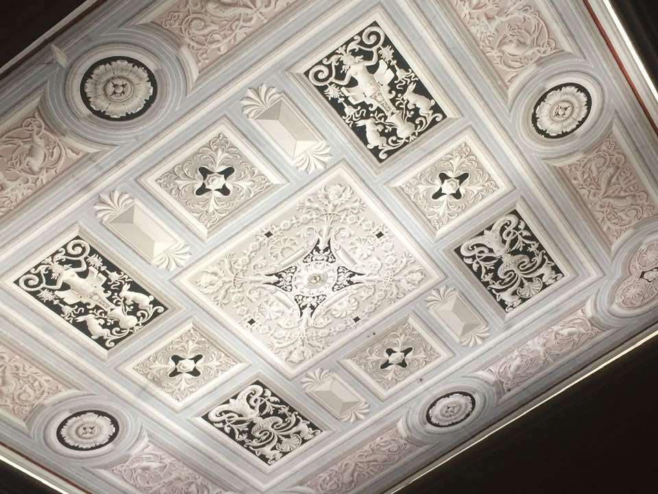 Ούτε οι ζωγραφισμένες οροφές του ούτε το υπεροχο κλιμακοστάσιο με τις πόρτες στον ημιόροφο με τα χρωματιστά τζάμια.