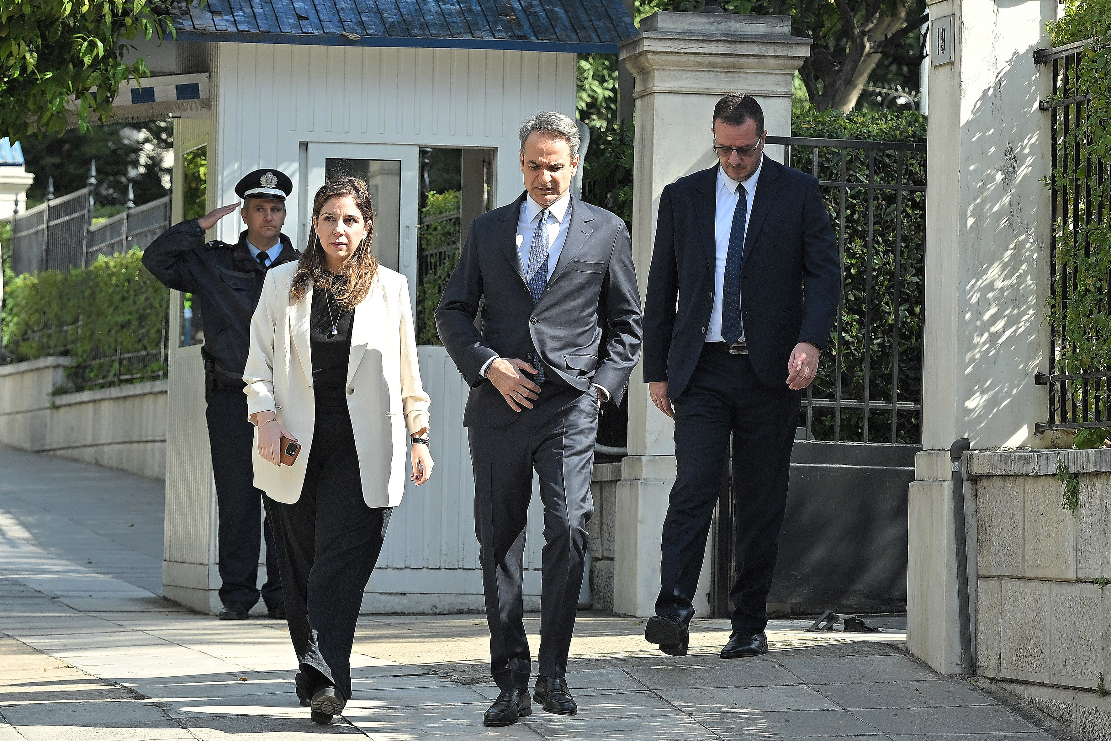 Ο πρωθυπουργός, Κυριάκος Μητσοτάκης, προσέρχεται στο Προεδρικό Μέγαρο για την ορκωμοσία των τριών νέων μελών της κυβέρνησης.