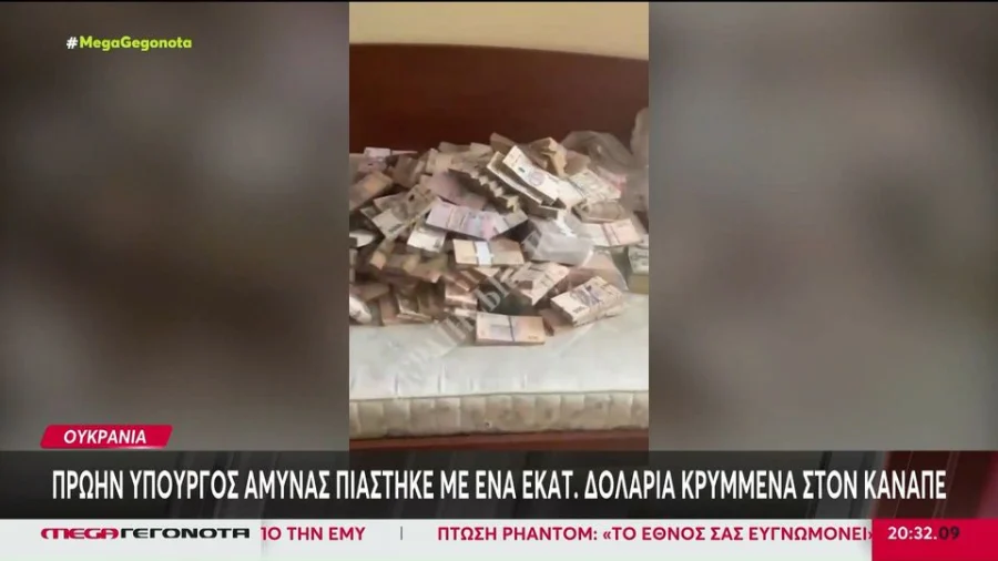 Σοκάρουν οι αποκαλύψεις για διαφθορά ανώτερων αξιωματούχων στην Ουκρανία σε καιρό πολέμου, που συνοδεύονται από βίντεο με έναν καναπέ γεμάτο χαρτονομίσματα συνολικής αξίας ενός εκατομμυρίου δολαρίων στο σπίτι του πρώην υφυπουργού Άμυνας.