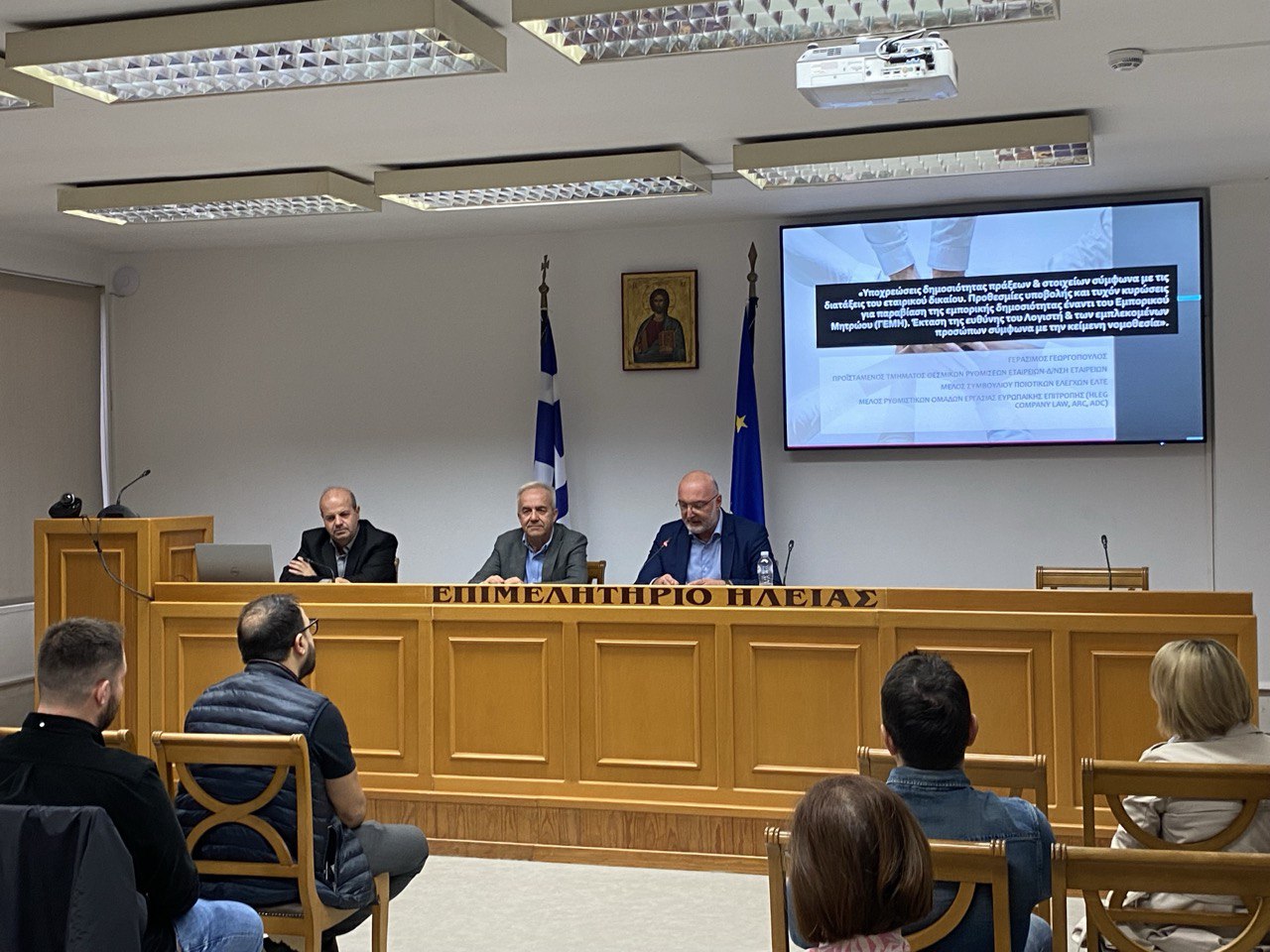 Εξειδικευμένο σεμινάριο για τις υποχρεώσεις δημοσιότητας στο Γενικό Εμπορικό Μητρώο (Γ.Ε.ΜΗ.) συνδιοργάνωσαν το Επιμελητήριο Ηλείας και το 10 ο Περιφερειακό Τμήμα Βορειοδυτικής Πελοποννήσου και Δυτικής Ελλάδας του Οικονομικού Επιμελητηρίου. Το σεμινάριο έλαβε χώρα την Παρασκευή, 17 Οκτωβρίου 2025, στην αίθουσα συνεδριάσεων του Επιμελητηρίου Ηλείας.