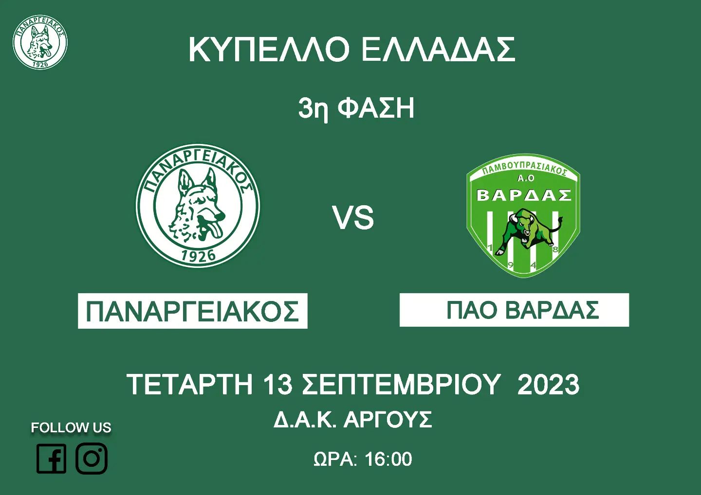 Την Τετάρτη (13/9) ο ΠΑΟ Βάρδας έδωσε το ματς με τον Παναργειακό στο Άργος για τον τρίτο γύρο του Κυπέλλου Ελλάδας, παίρνοντας την πρόκριση στη διαδικασία των πέναλτι με 3-4 (καν. αγ. 1-1 και παράταση επίσης 1-1).