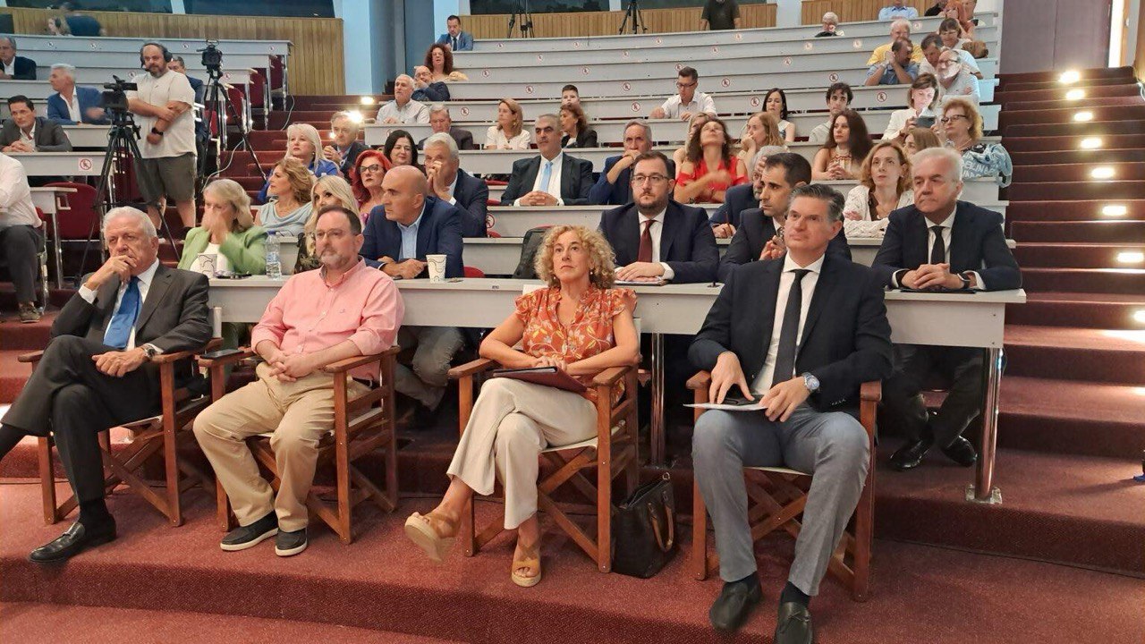 Στο πλαίσιο της εναρκτήριας τελετής, που πραγματοποιήθηκε στη Διεθνή Ολυμπιακή Ακαδημία, ο κ. Λεβέντης επέδωσε επίσημα στον Πρόεδρο της Ολομέλειας, κ. Δημήτρη Βερβεσό, και στον Πρόεδρο του Δικηγορικού Συλλόγου Ηλείας, κ. Δημήτρη Δημητρουλόπουλο, φάκελο με τις θέσεις του νομού. Ο φάκελος περιλαμβάνει τα κοινά ψηφίσματα του Επιμελητηρίου, των επτά Δήμων της Ηλείας και 41 επιπλέον εμπορικών, επιστημονικών και παραγωγικών φορέων.