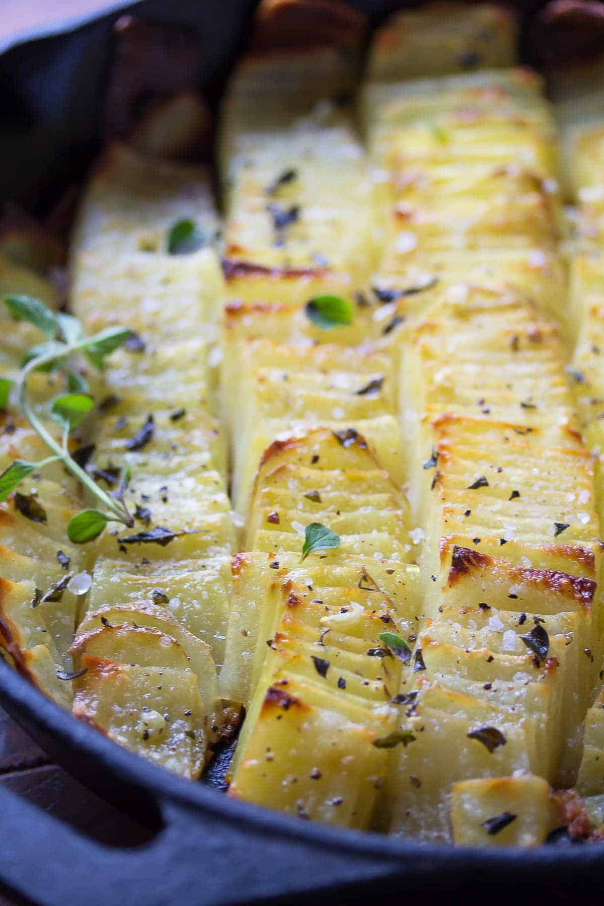Αυτές οι πατάτες ετοιμάζονται πανεύκολα, καταναλώνονται αμέσως μόλις βγουν από τον φούρνο, και γίνονται νοστιμότατες, με τα αρώματα του θυμαριού και του σκόρδου να αναδύονται στην ατμόσφαιρα και να τους δίνουν ιδιαίτερη γεύση.
