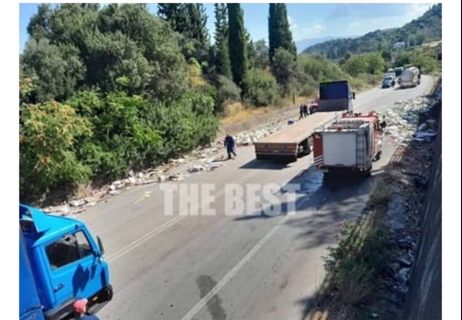 Πατρών -Πύργου: Έκλεισε η εθνική από… ξίδια που έπεσαν από νταλίκα