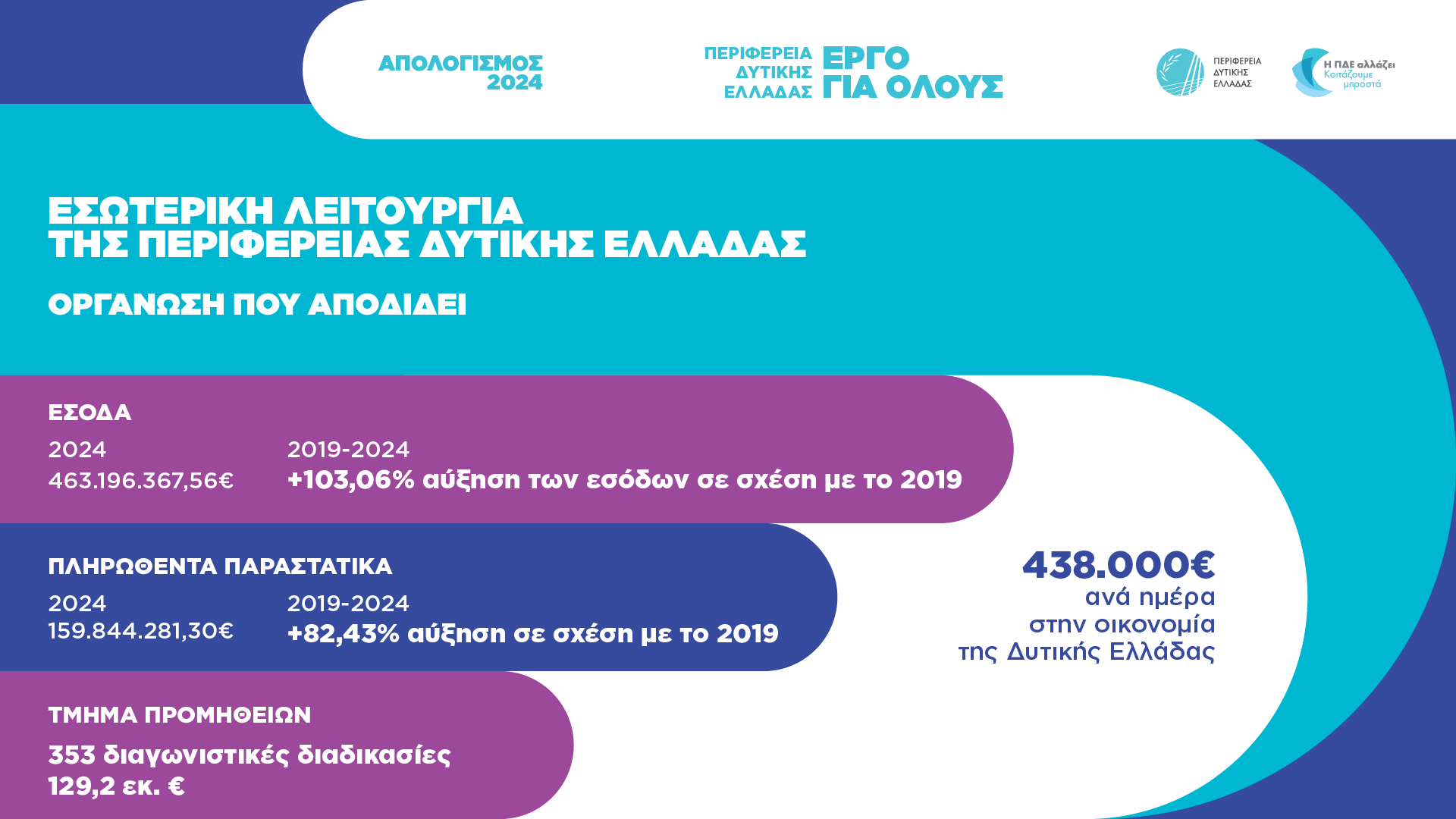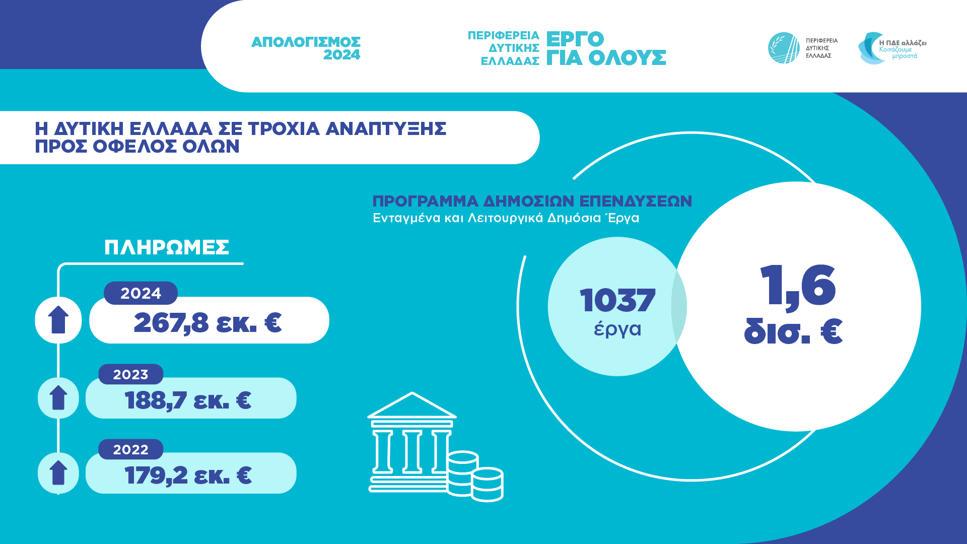 Παρουσιάζοντας τα βασικά μεγέθη του απολογισμού του 2024, ο Περιφερειάρχης Δυτικής